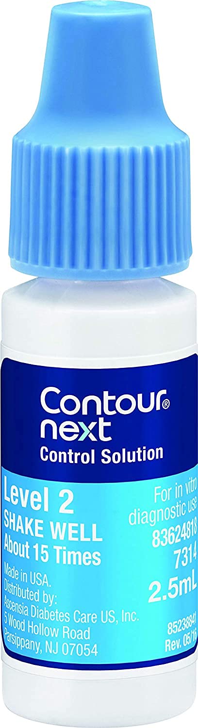 2.5mL, For Use with Contour Next Glucose Meter and Test Strips Bayer Contour Next control solution level 1 is designed to check the accuracy of your glucose meter and test strips. Simply apply a drop of the Contour Next level 1 glucose control solution to a test strip and run a standard glucose test. Confirm that the test results are within the accepted range printed on the test strip vial.