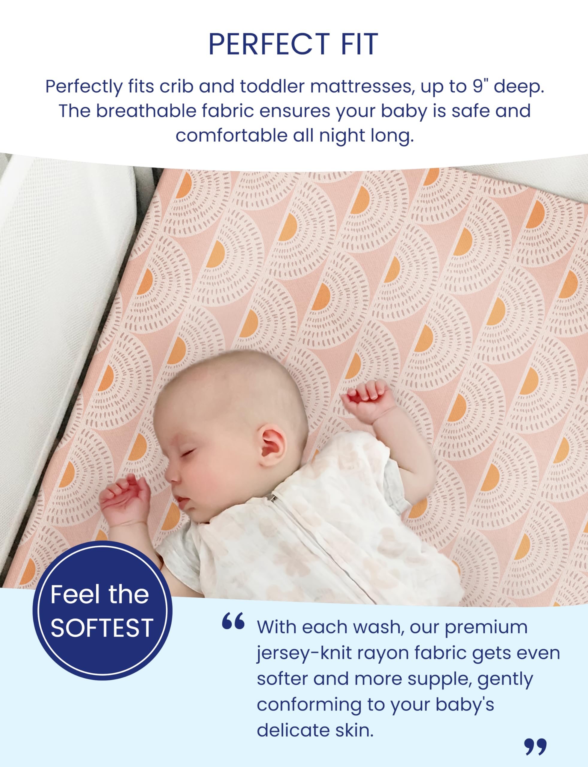 SOFTER FOR LONGER: With every wash, our patent TotCare Fabric becomes softer and more malleable, molding softly to your baby's crib mattress and around your loved little one's skin. No more one-time use. Use it. Wash it. And love it. 100,000+ wash greater; No deformation, no damage, no fading.