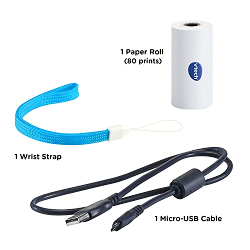 Click and print instantly with the KidiZoom PrintCam. Preview photos with the 2.4" color screen and print regular or panoramic photos in black and white. Flip up the lens to take selfies! The included paper roll prints up to 80 images—that’s a pennies per print value! When the paper’s gone, get the KidiZoom PrintCam Paper Refill Pack (sold separately) to get three paper rolls and two adhesive paper rolls to turn photos into stickers. Also works with most 2.2"Wx1.2"D thermal paper refills. Let your creativity loose and add stickers, filters and borders to any image or video. Turn photos into drawings you can color yourself. Browse 110+ templates and activities including small greeting cards, printable games and more. This kid-friendly camera takes videos, too! Backup your full-color photos and videos by transferring them to a computer using the included USB cable under adult supervision. Use the microSD card slot to increase storage up to 32GB with a memory card (not included). Three video games are included for playtime between photo shoots. Includes parent controls to set daily time and printing limits or turn off games. Set to English or Spanish. Intended for ages 4+ years. Non-removeable, rechargeable lithium-ion battery included. Recharge battery with included USB cable.