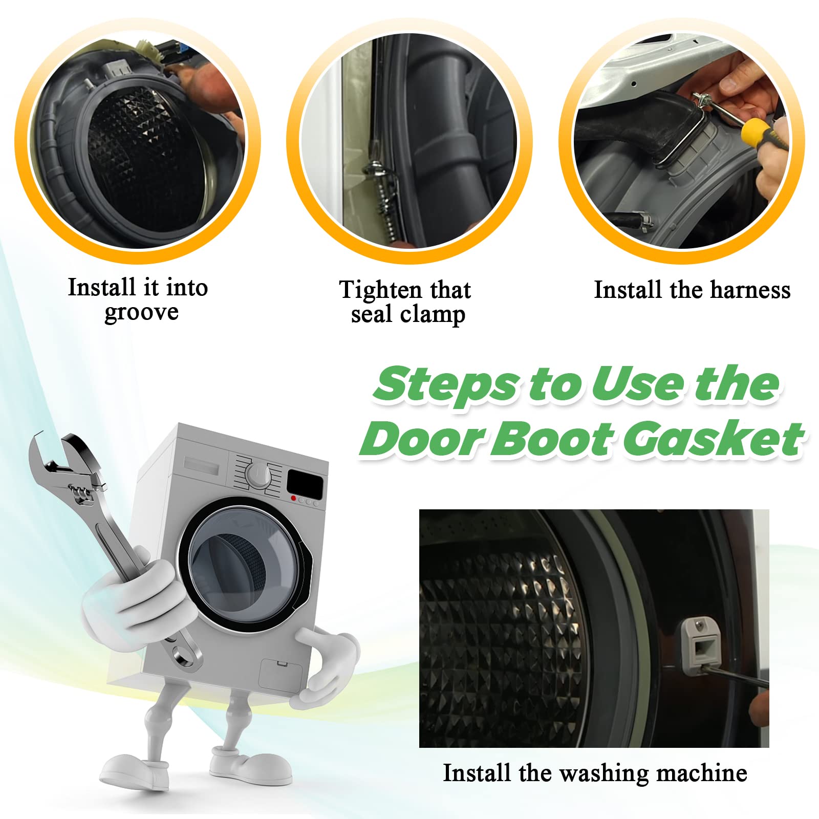 ใ๐๐ก๐ฆ๐ง๐๐๐๐๐ง๐๐ข๐ก ๐ฆ๐ง๐๐ฃ๐ฆใ: Disconnect the power before installing oem dc97-18094b washer door boot seal and wear work gloves to protect your hands. You can watch YouTube videos which has great tips.โ Disassemble top, front control pannel, face, weights, access gasket rubber disconnect clean rim, install new one line up arrow and notch cut out inside go round whole rim add wire, back off screw tight, add weights, bolt on and connect everything back to gather works as it should