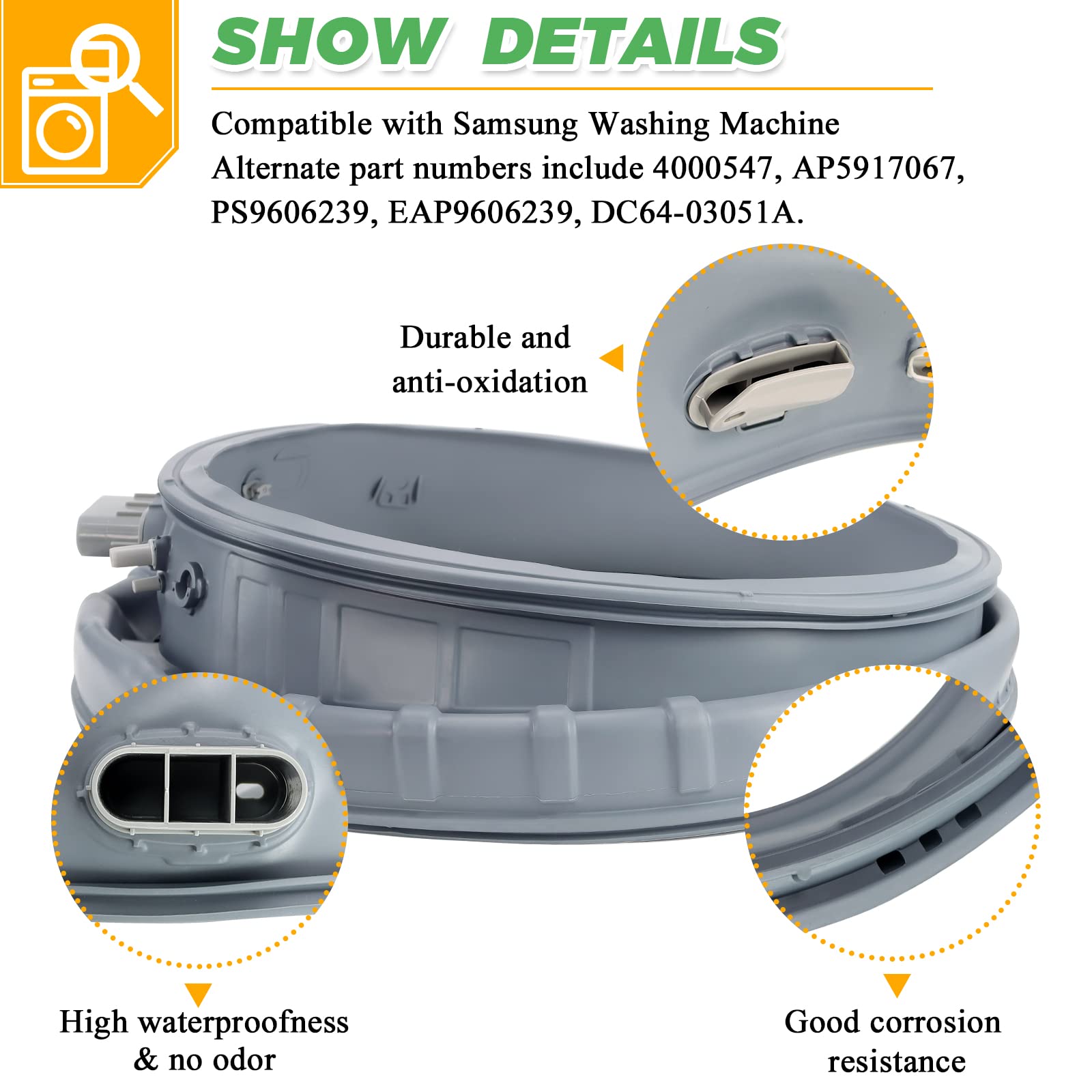 ใ๐๐๐ต๐ณ-๐ญ๐ด๐ฌ๐ต๐ฐ๐ ๐ช๐๐ฆ๐๐๐ฅ ๐๐ข๐ข๐ฅ ๐ฆ๐๐๐ใ: The dc97-18094b washer door boot seal can form a seal between the wash tub and the door, the snap and original washer door fit snugly, preventing leaks. โ DC97-18094B washer door boot seal gasket diaphragm for samsung is made of high-quality ๐๐ฃ๐๐ ๐ฅ๐๐ฏ๐ฏ๐ฒ๐ฟ, has been tested to have good corrosion resistance and outstanding oxidation resistance, guarantees high elasticity, high water resistance, no odor, prolong service life