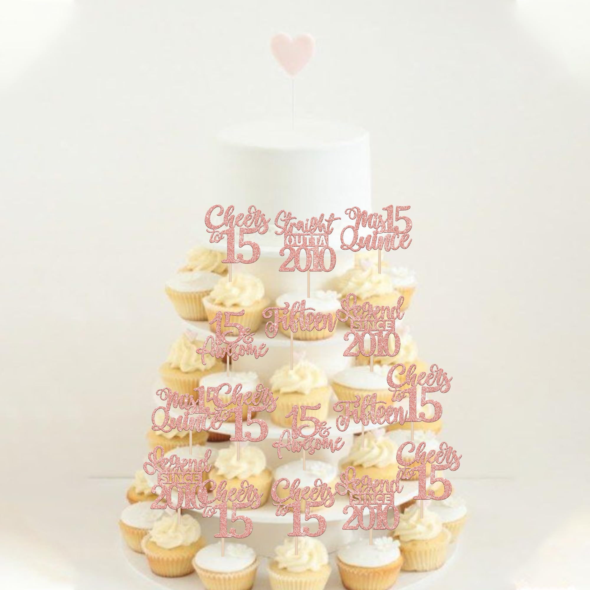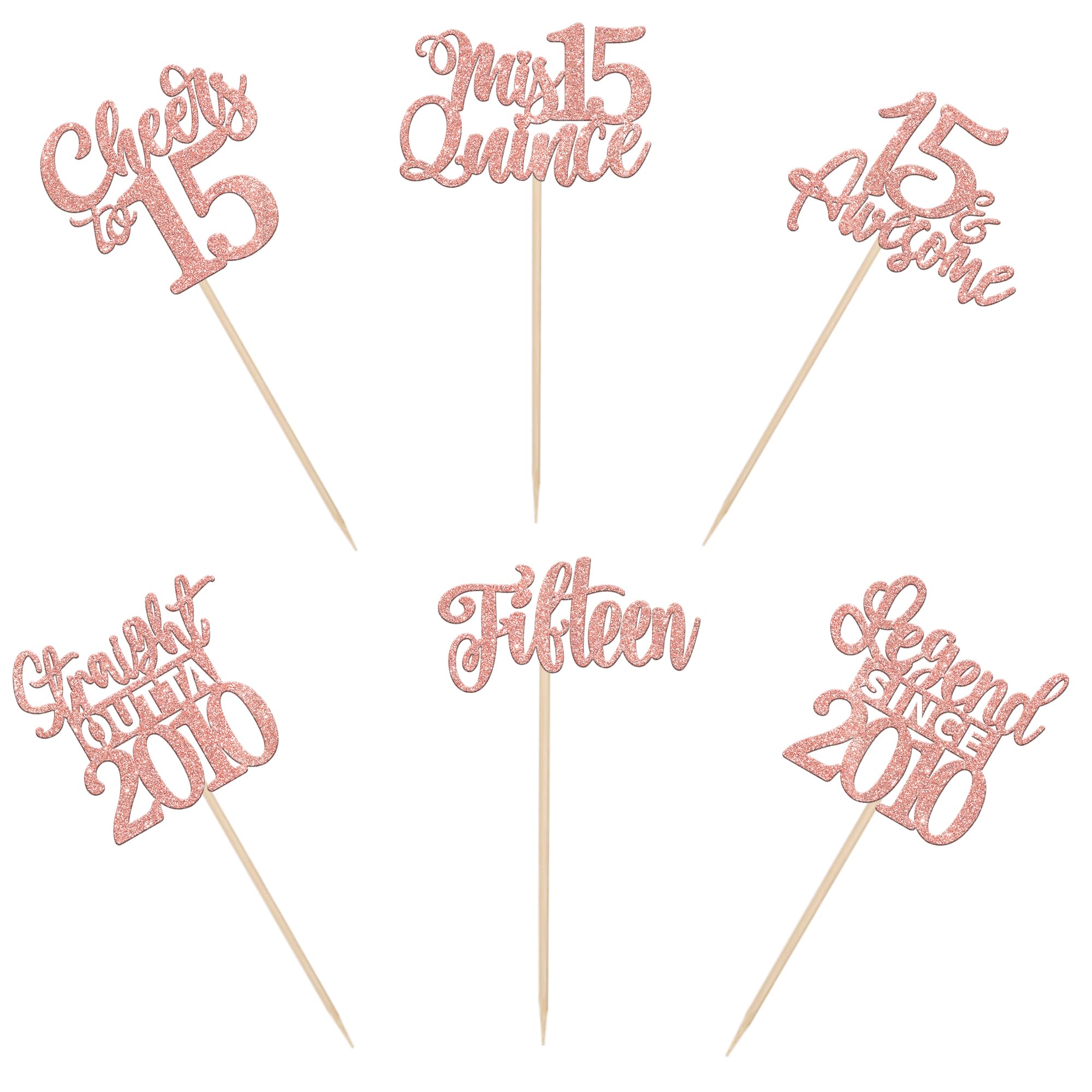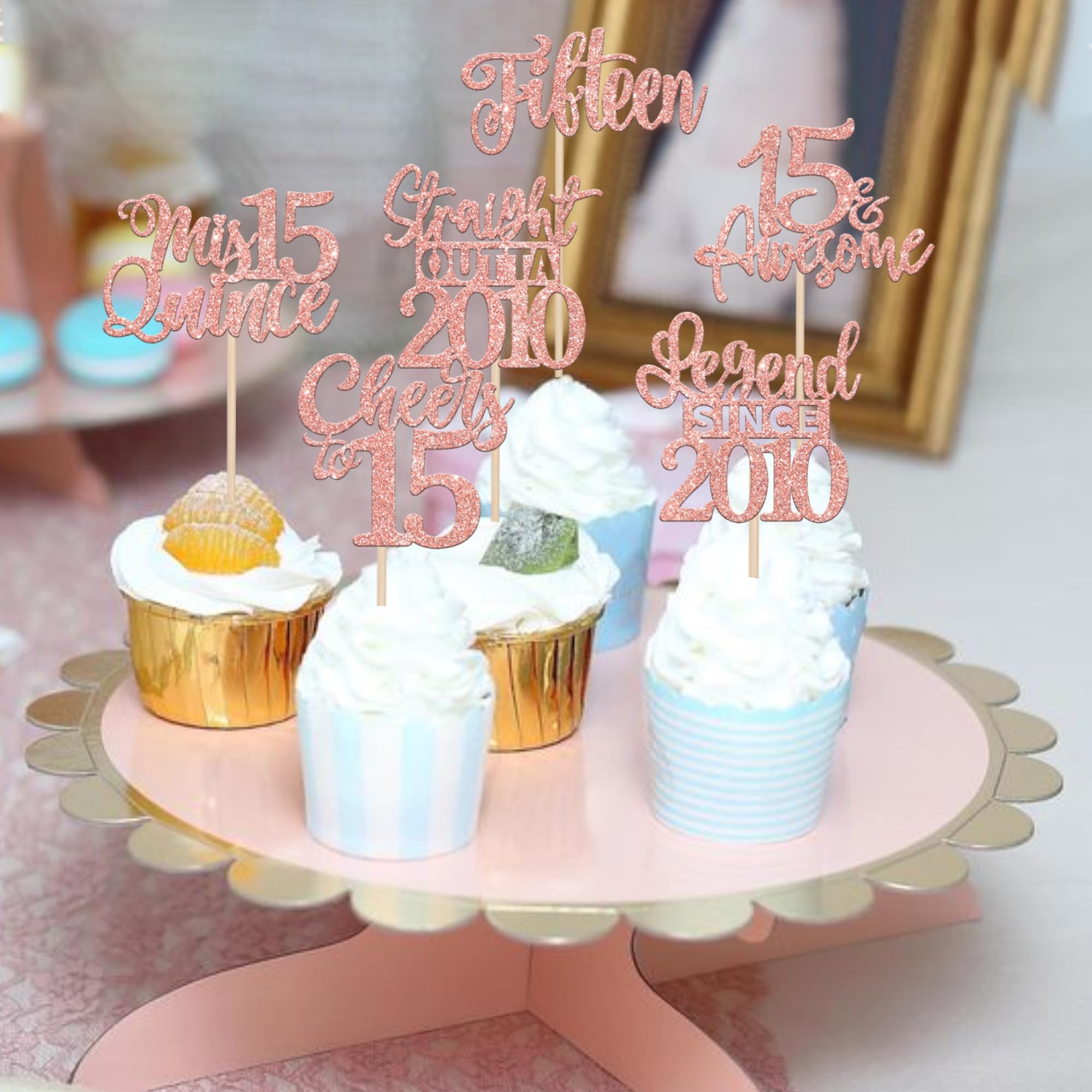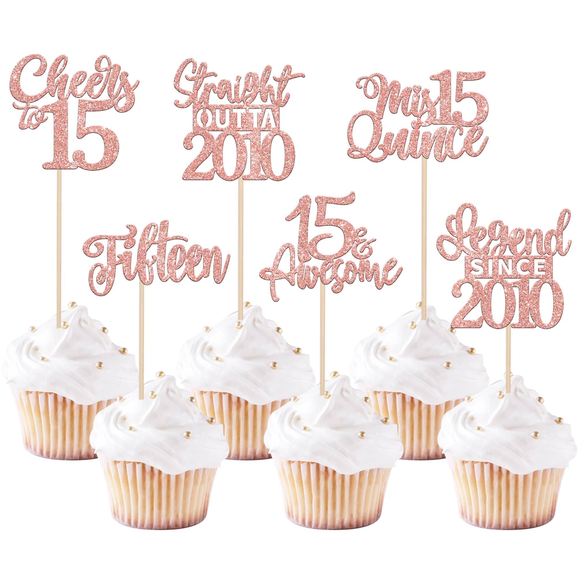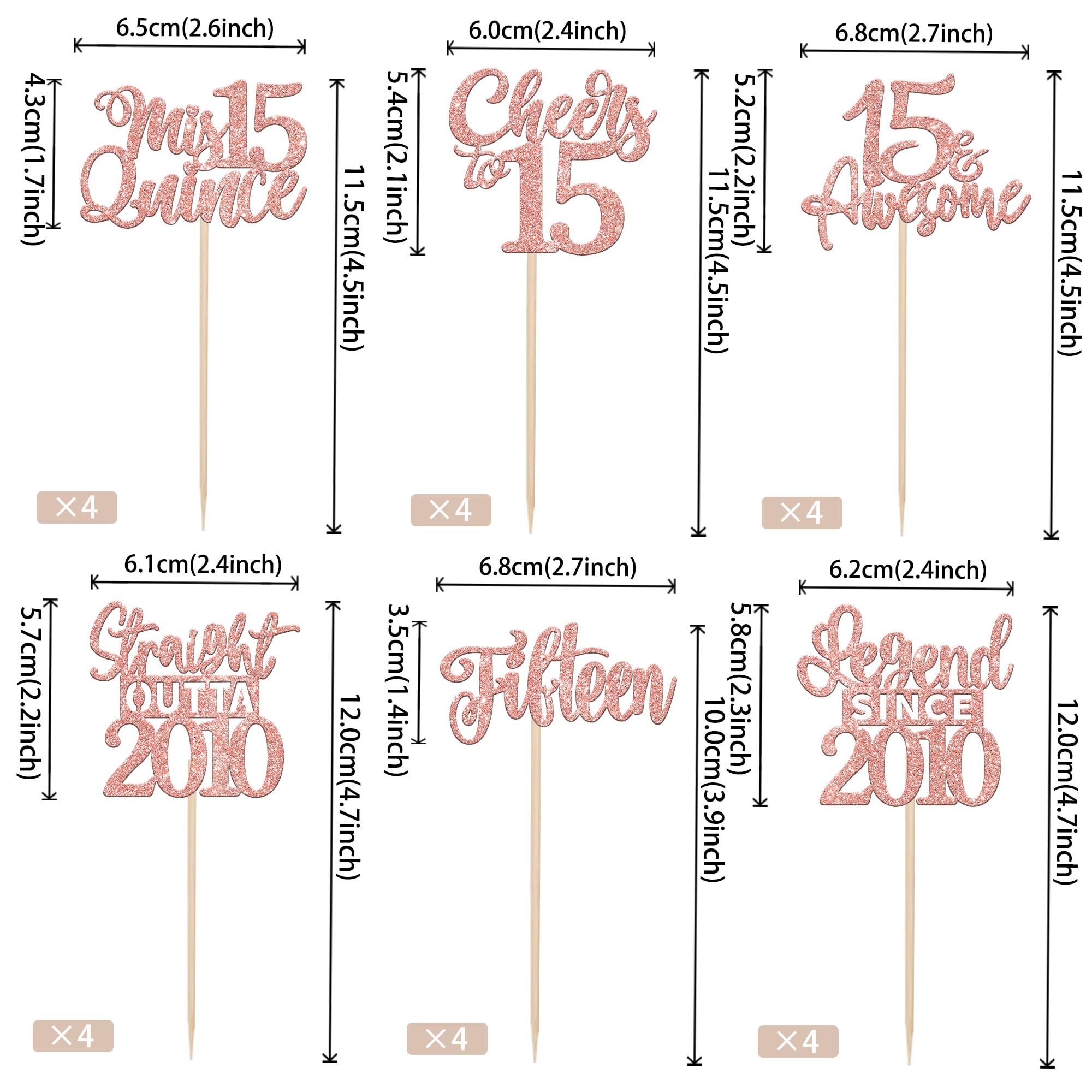 24PCS 15th Birthday Cupcake Toppers Fifteen Mis 15 Quince Straight Outta 2010 Cupcake Picks Cheers to 15 Lengend Since 2010 Cake Decorations for Happy 15th Birthday Anniversary Party Cake Decorations Supplies Perfect for legend since 2010 theme party, 15th anniversary theme party,cheers to 15 years theme party, 15 awesome theme party cupcake decorations supplies. Pack of 24 pcs,4 pcs of each design. The size is 2.6*4.5/ 2.4*4.5/ 2.7*4.5/ 2.4*4.7/ 2.7*3.9/ 2.4*4.7 inch ( with stick ) Made of high quality paper card stock,thick and sturdy. These straight outta 2010 cupcake toppers are one side glitter, another side is white, and they are intended for decoration only, please do not put them in oven or microwave. If the item you received has any defects, please contact us immediately. We will deal with it within 24 hours.
