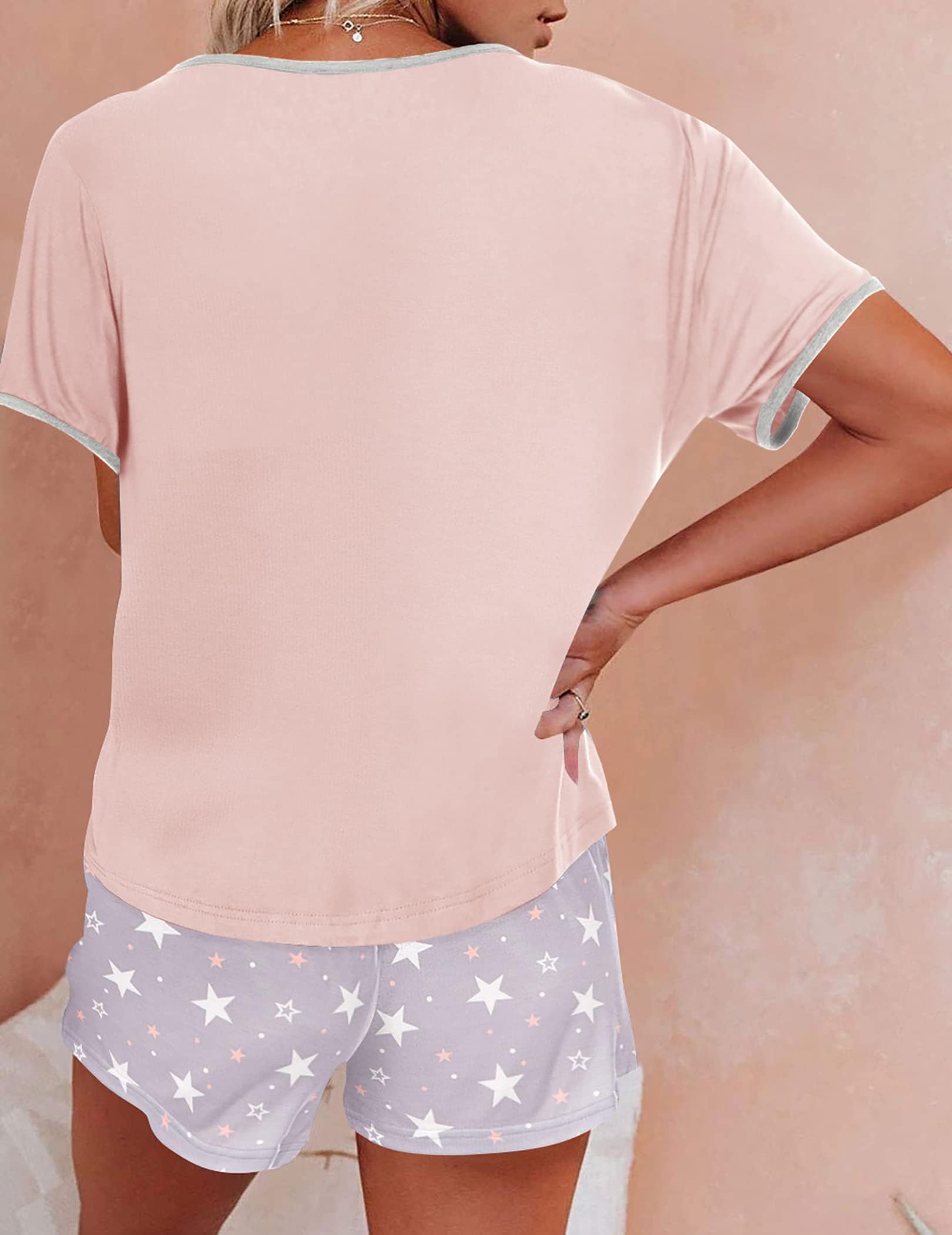 Short sleeve tee with round neckline pairs perfectly with mid-thigh length shorts
