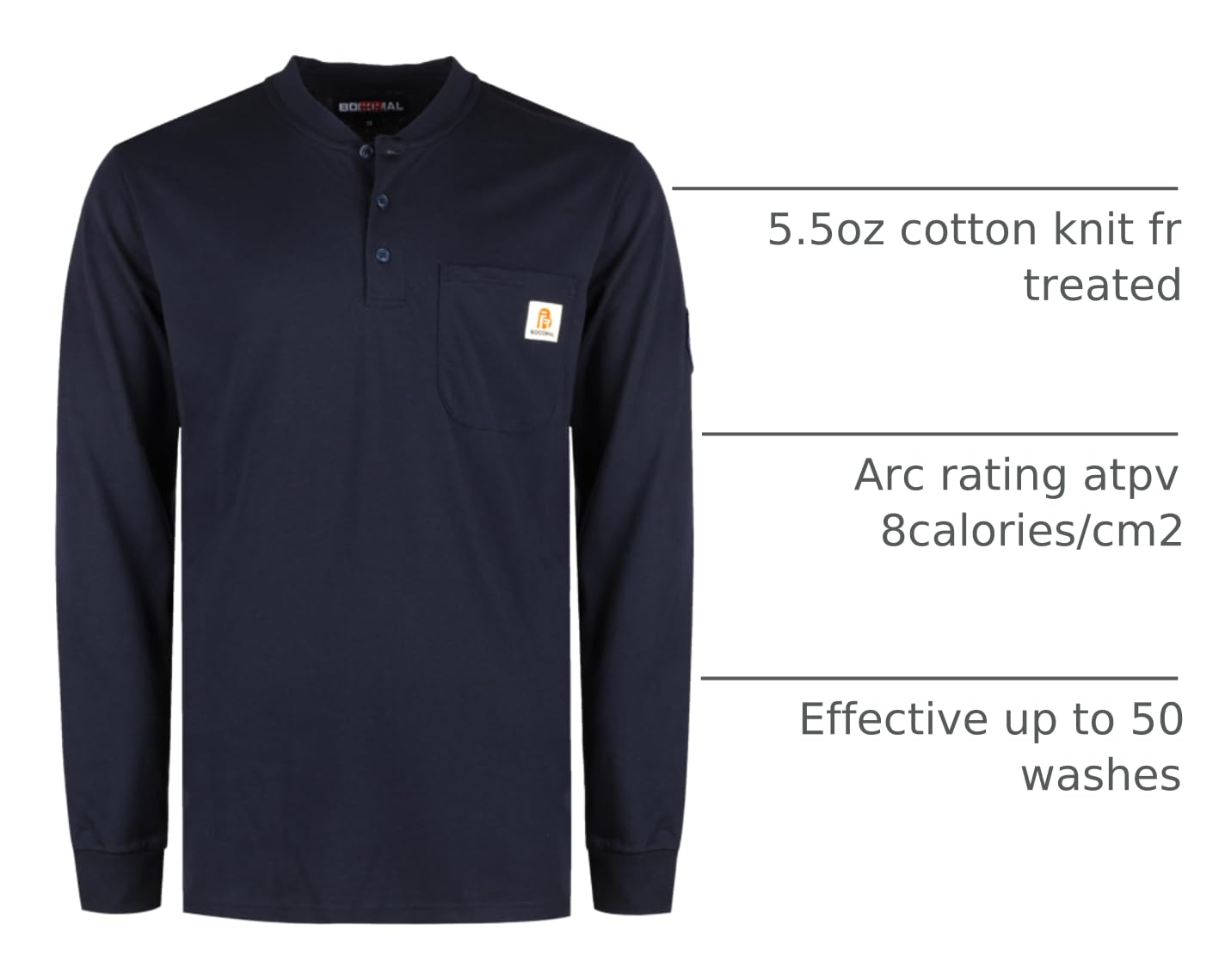 FR MATRIALSοΌ5.5OZ Cotton Knit FR Treated,FR Buttons,FR Sewing Threads!Clear FR Tag on arms and bottom front.More FR info On Neck Tag About UL Certification.We Attached A Small Sample Inside Package For Cunstomers Simple FR Try