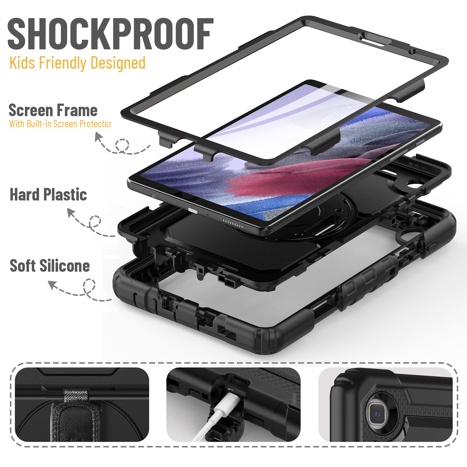 Shockproof & Screen Protector : This case for Galaxy A7 lite tablet is made of anti shock material, soft silicone, hard PC shell and built-in screen protector (2 front cover, one with built-in screen protector and one without), with its sturdy structure to protector your tablet from shock, drop, scratch or accidental damages in daily use.