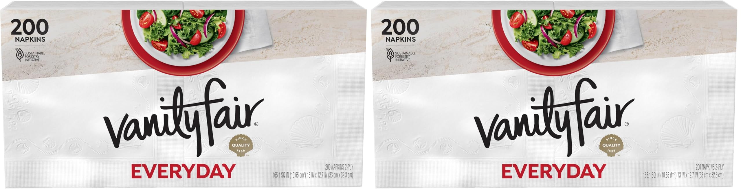 Featuring a smooth, cloth-like texture and a fashionable design embossed with our signature flair, Vanity Fair® Everyday Napkins look stylish at breakfast, lunch, dinner, or any time in between. Our paper napkins come with our classic design and subtle embossed pattern to make every meal feel a little more special. These napkins look elegant paired with your everyday dinnerware or flatware or arranged in a napkin dispenser on your table or countertop. Ideal for everyday family meals, picnics or hosting a party, these durable, absorbent yet soft paper napkins are perfect for setting the table on any occasion. You’ll love the comfort of cleaning your hands and face with the soft texture of our premium table napkins. Vanity Fair® Everyday 2-ply dinner napkins are absorbent and smooth to the touch, with a texture and look that’s similar to cloth napkins. You can feel good about choosing Vanity Fair® napkins too. These paper napkins are made from responsibly-sourced trees certified to the Sustainable Forestry Initiative® Fiber Sourcing Standard (SFI-00007). Enjoy meal time with Vanity Fair® Everyday Napkins today!