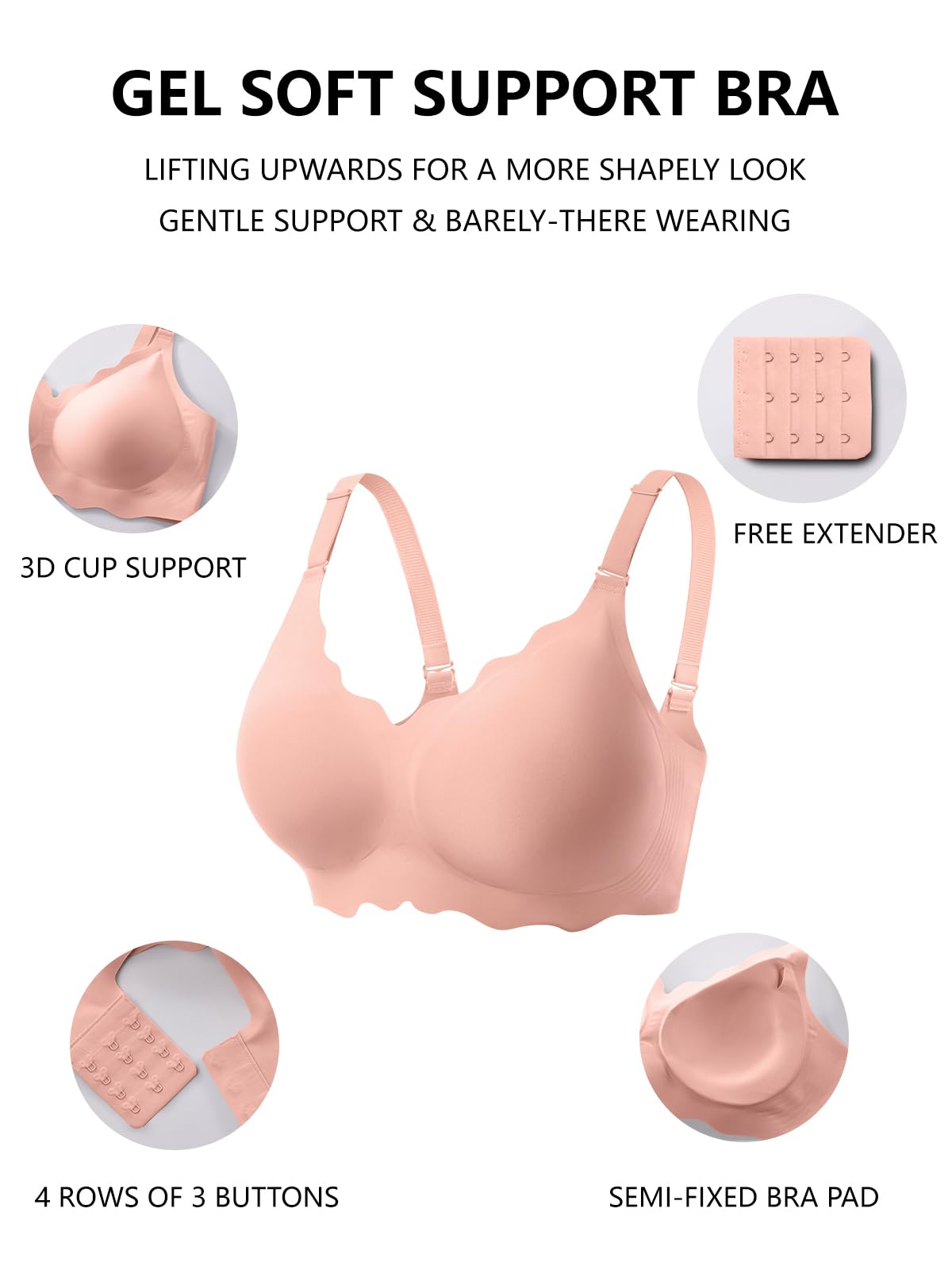 【Soft Supportive bras with Jelly Strip】Experience super support with our wireless push-up bra, featuring an innovative "W" shaped jelly strip that wraps around each breast for 360°natural-looking lift and shaping. This unique 3D support technology enhances your curves without underwire, offering a perky, rounded silhouette with anti-sagging confidence.