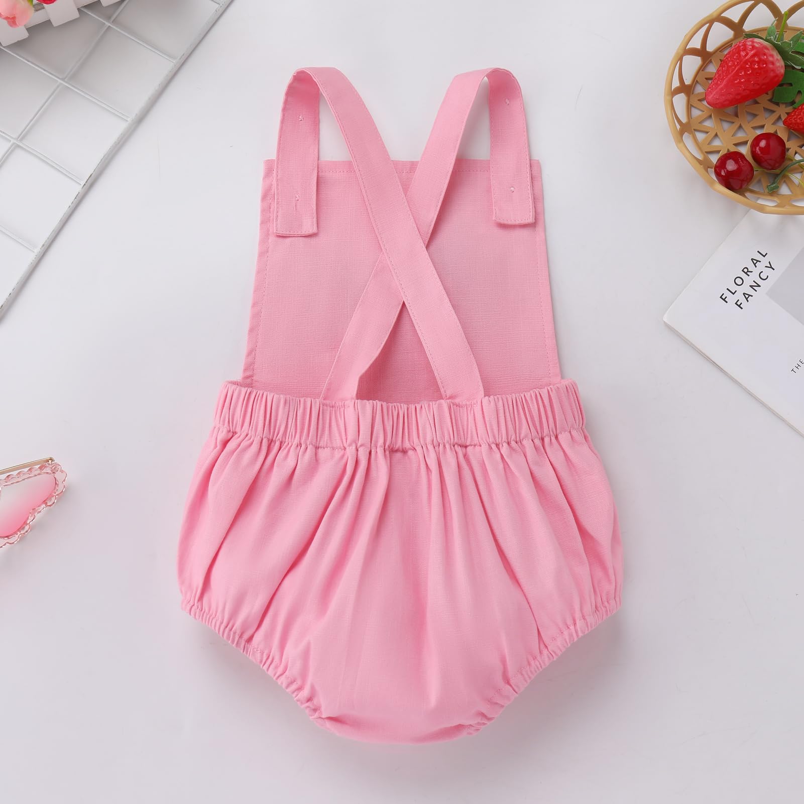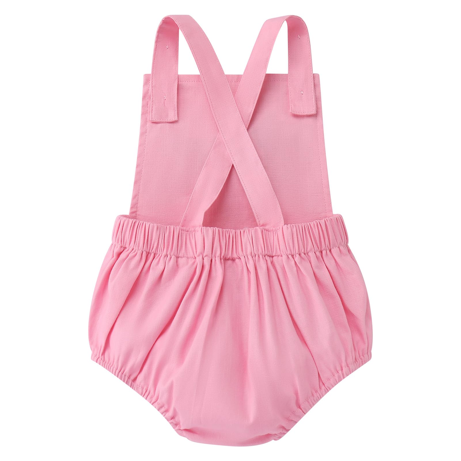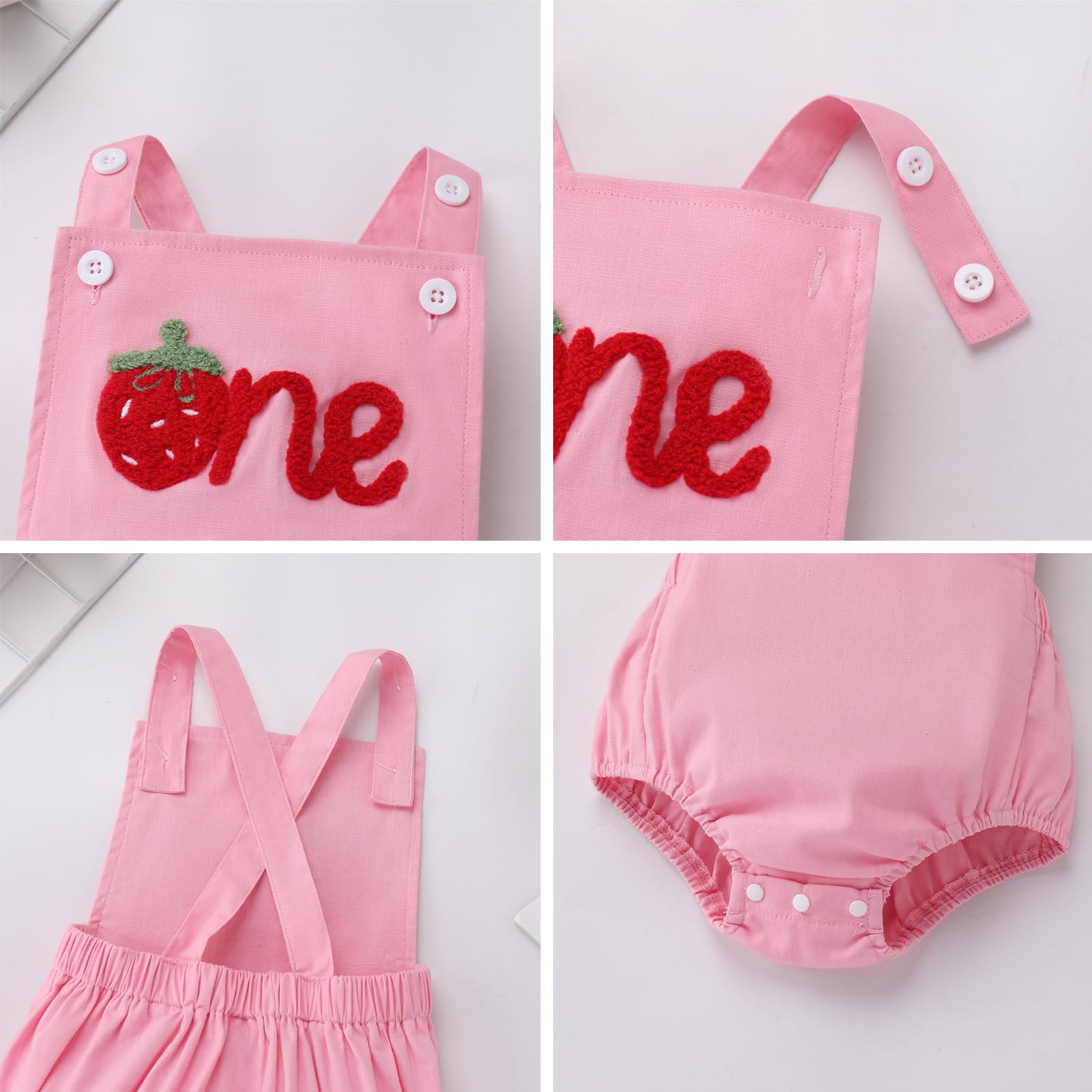 Boho Birthday Outfits for Baby Boy Girl: Adjustable spaghetti straps square neck jumpsuit, each shoulder strap with two buttons, adjust the tightness through the buttonholes. Elastic band at back, adjustable straps that crisscross in back, allows for a customized ease and fit to different body shapes. With 3 snaps at the crotch, easy to change diapers. Embroidered with the letter "One" on the front, adorable as strawberry 1st birthday outfit, baby photoshoot outfits girl for toddler;