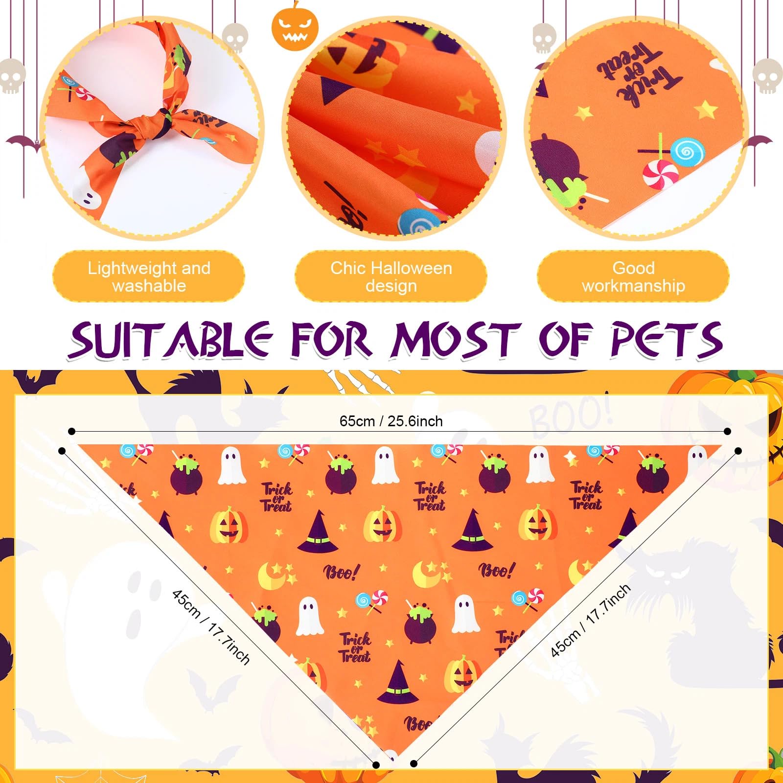 Sized for Most Dogs: these halloween dog bandanas for dogs are approx. 25.6 x 17.7 x 17.7 inches/ 65 x 45 x 45 cm, the right size for most size dogs, can be folded and adjusted, please confirm the size information before purchasing