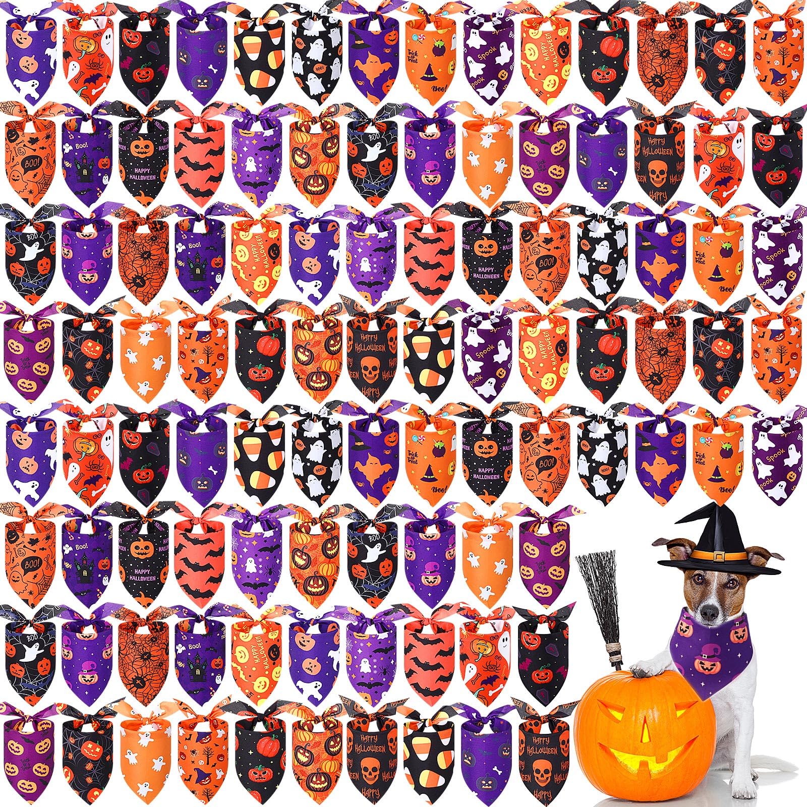 Abundance in Quantity: there are 100 pieces halloween bandanas for dogs, available in different patterns and colors, enough quantity and various styles to meet your pet's halloween decoration needs and replacement or share with your family or mates who have lovely pets