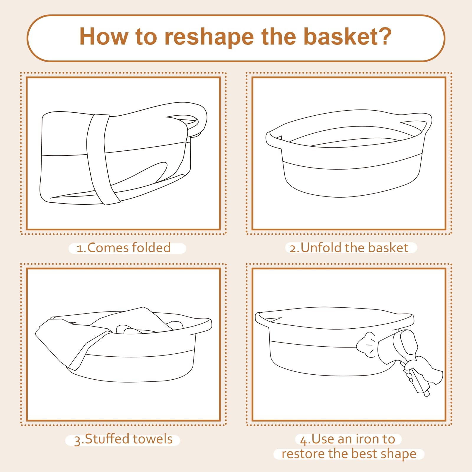Foldable and Easy to Clean: This storage basket can be folded and stored when not in use to save space, it is machine washable for easy cleaning, the basket is shipped folded for transport so you will need to place towels or use an iron for it to regain its shape