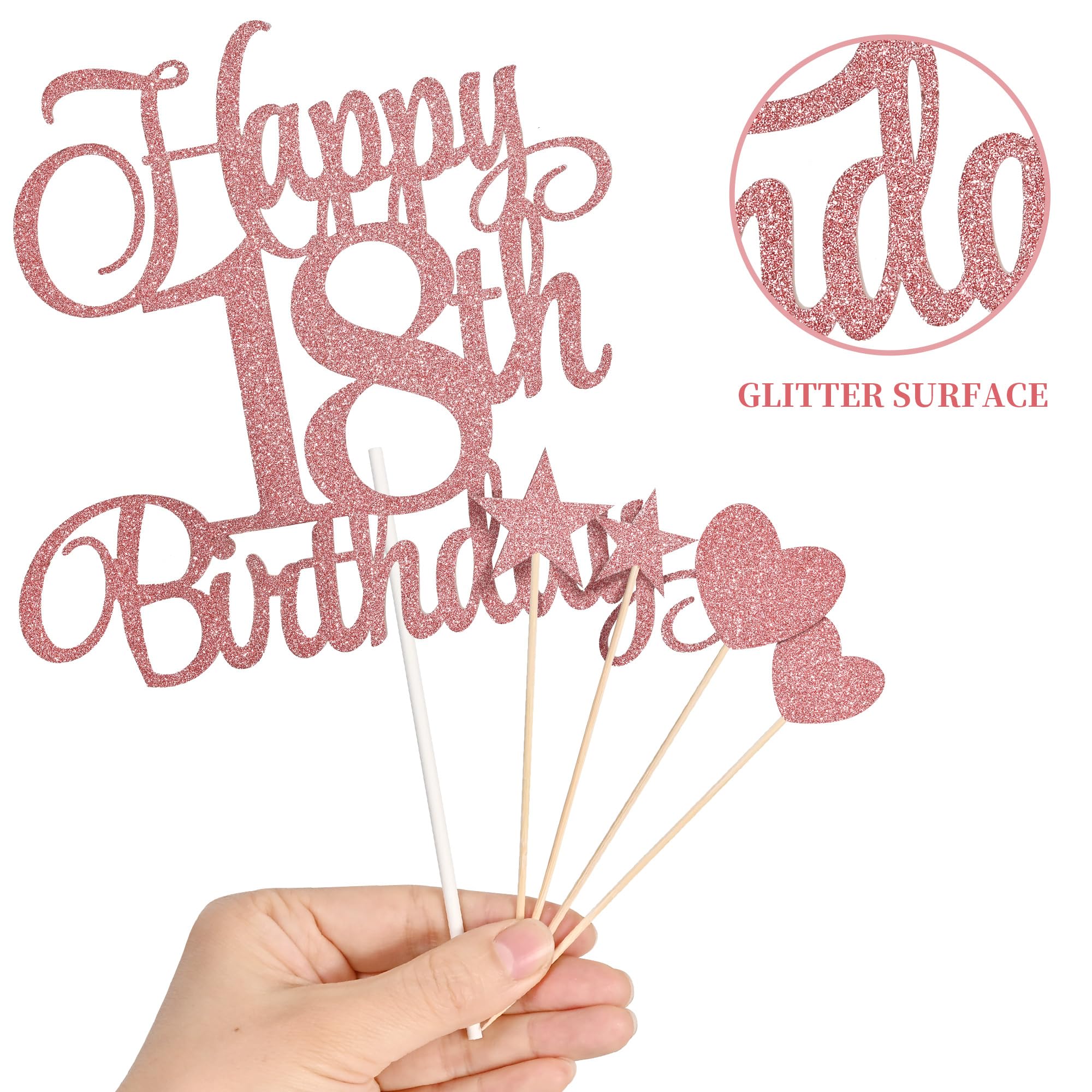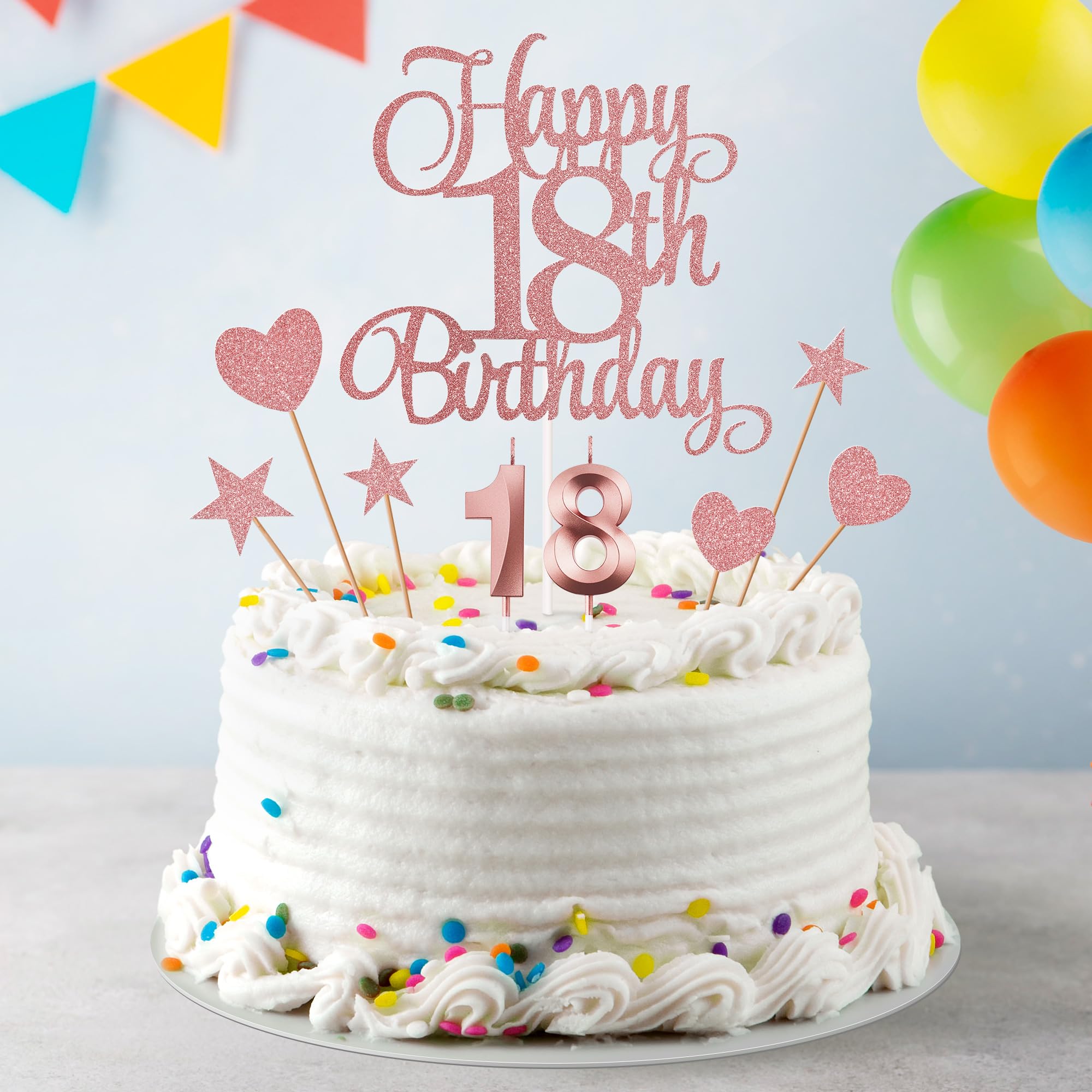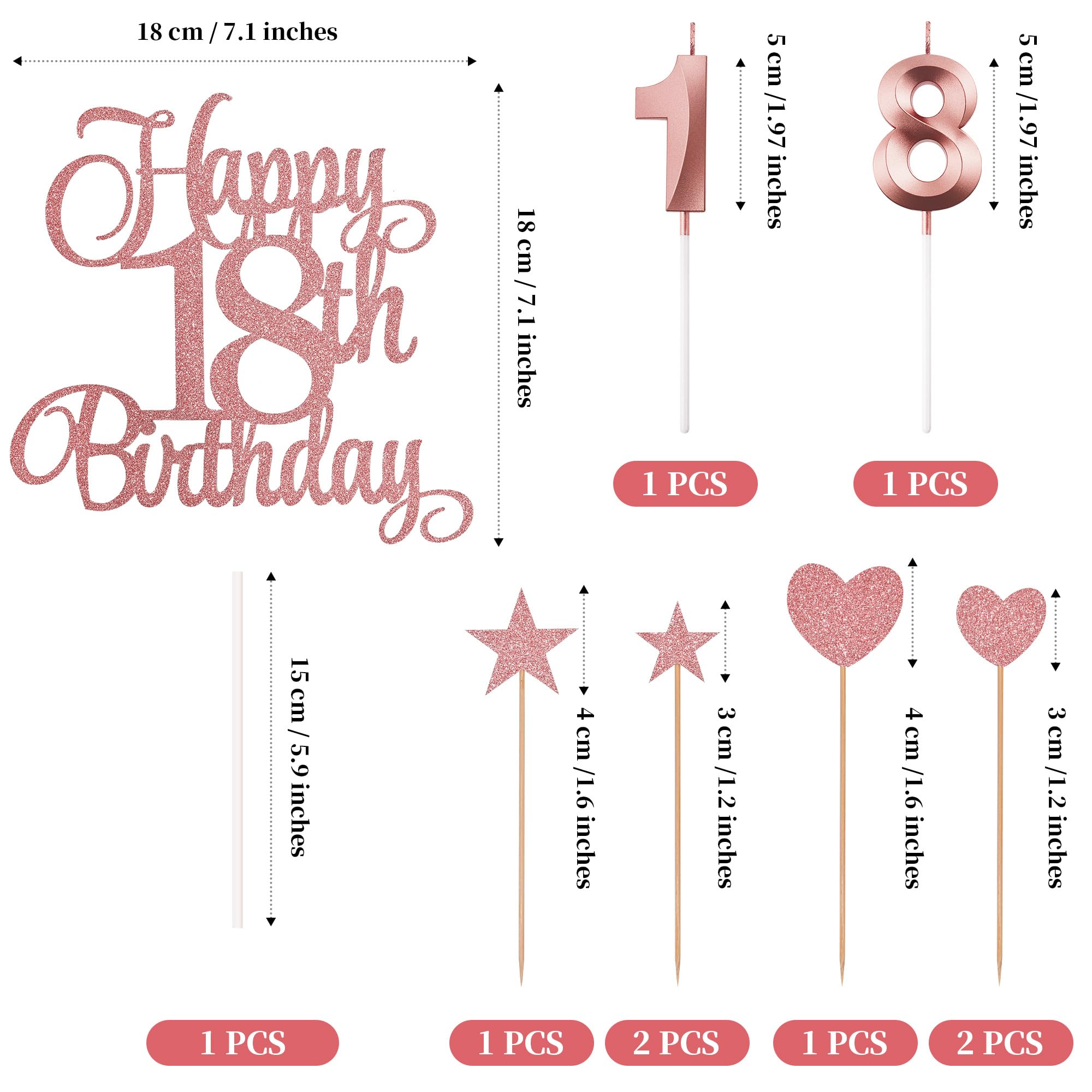 Package content: you will receive 1 piece happy 18th birthday topper, 3 pieces star cake toppers, 3 pieces heart cake toppers and 2 pieces numeral candles, it's a great addition to the 18th birthday party and anniversary party