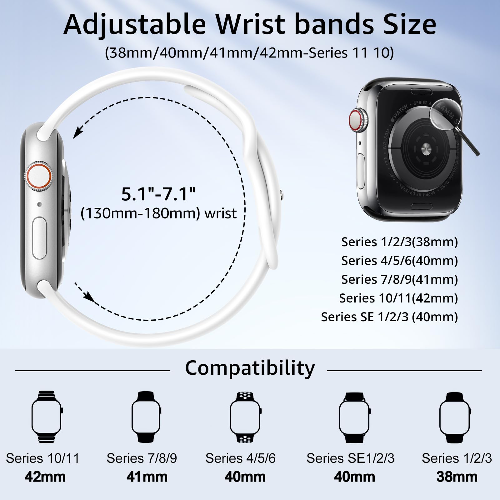 【Compatible Models】 AMSKY sport silicone bands compatible for Apple Watch 38mm 40mm 41mm 42mm 44mm 45mm 46mm 49mm,iWatch series 11,iWatch series 10.iWatch series 9,iWatch Series 8,iWatch Series 7, iWatch Series 6, iWatch Series 5, iWatch Series 4, iWatch Series 3, iWatch Series 2, iWatch Series SE,iWatch series Ultra/2.Please check the size on the back of your watch to choose the right size.