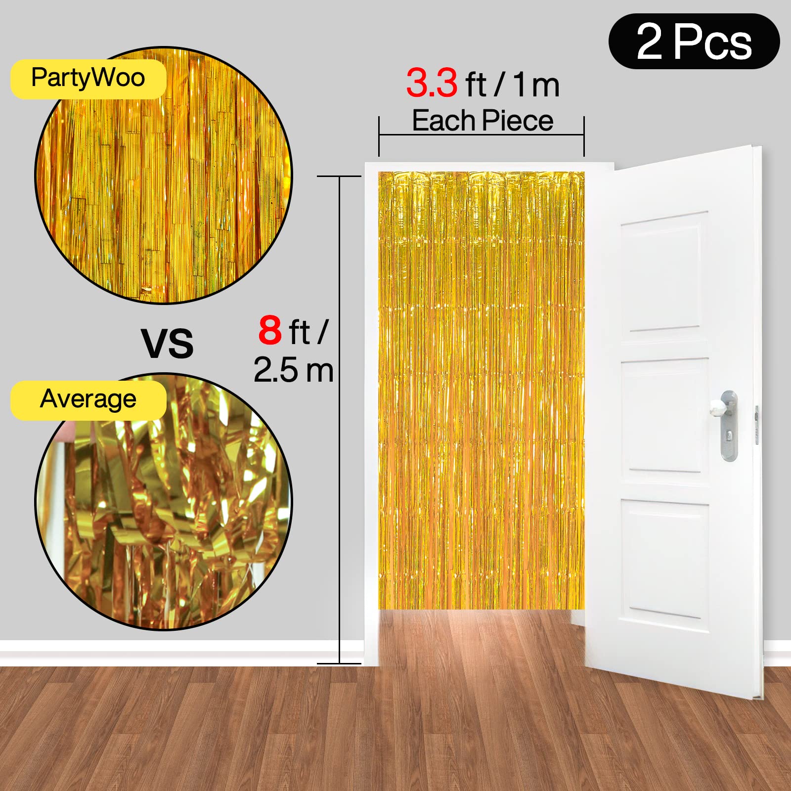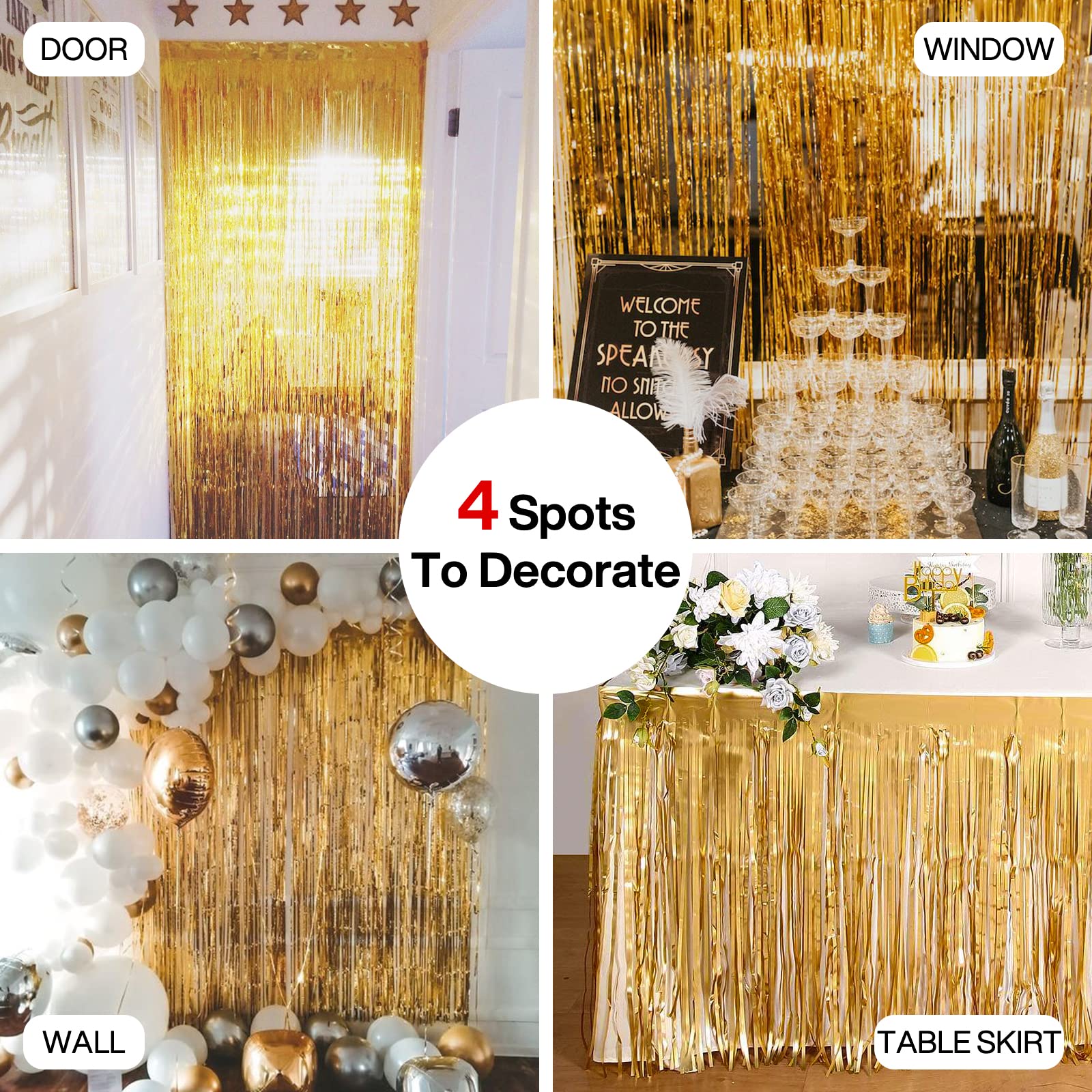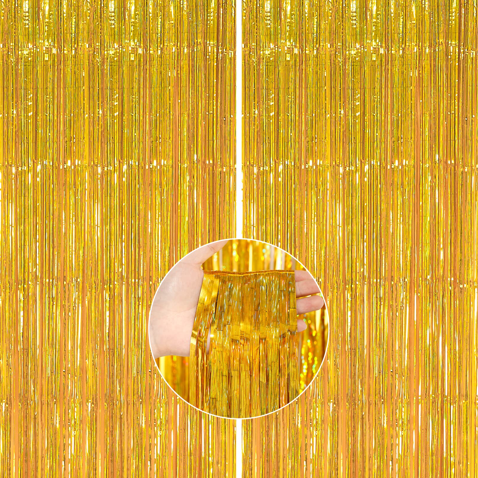 Including: 2 pcs gold foil fringe curtains, 6.6 feet length x3.3 feet width