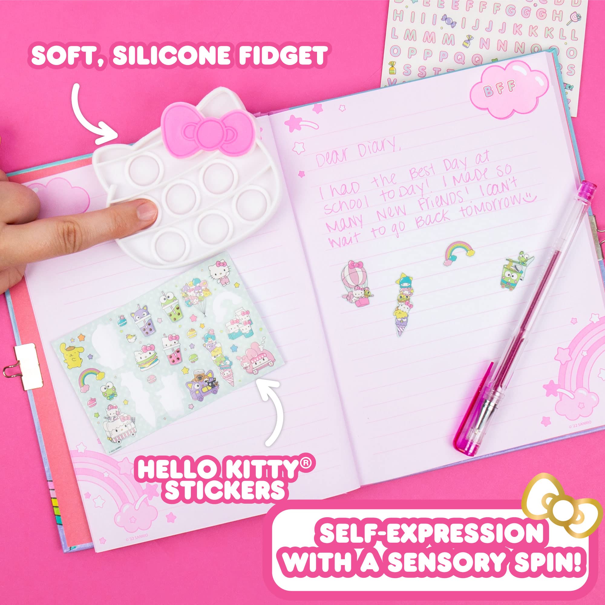 HELLO KITTY DIARY + FIDGET TOY: This diary for kids comes with a poppable fidget toy cover you can use to keep your hands busy and your mind clear! Press the spheres to hear their satisfying sound, then flip it over and pop again!
