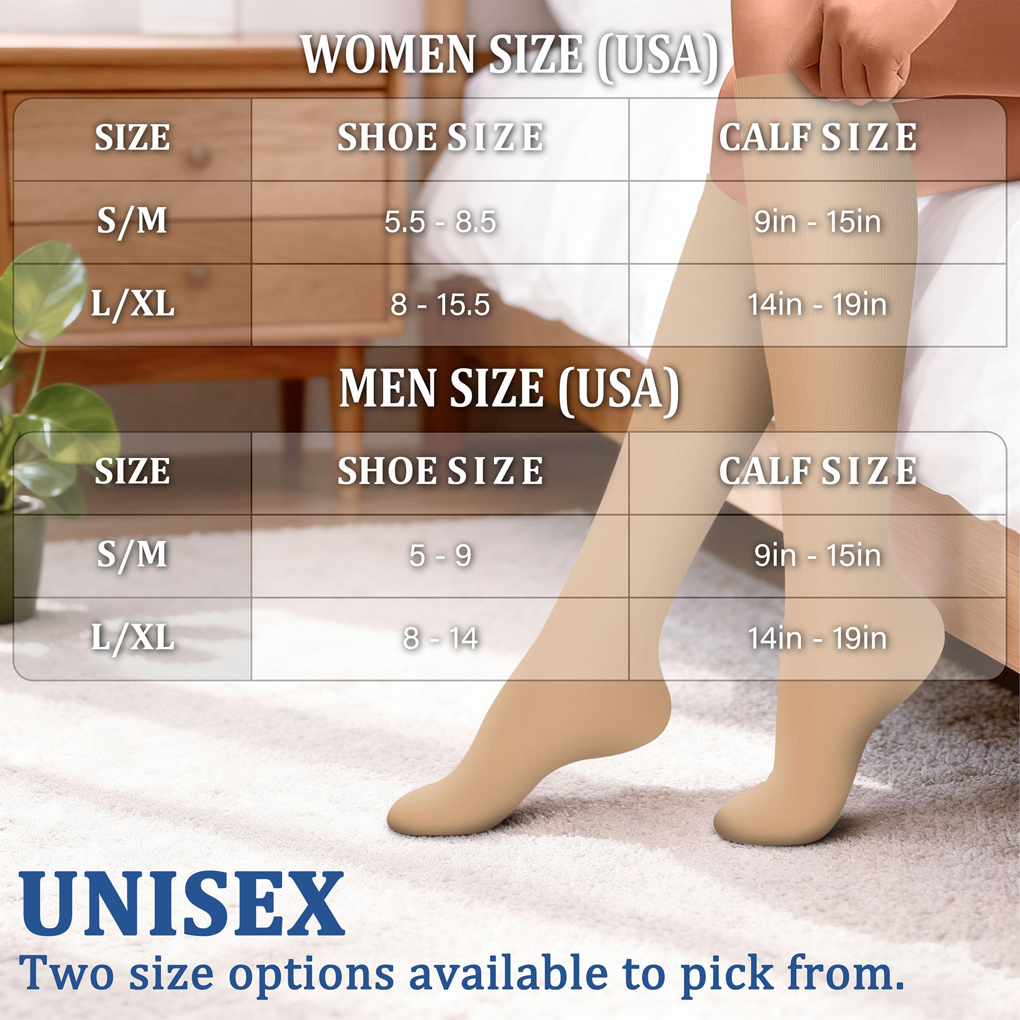 COPPER FIBERS - Copper is a great conductor of electricity, we extended its natural property to rejuvenate blood circulation in your legs through copper fibers capable reviving blood circulation along with providing a 15-20 mmHg compression. Socks are designed according to the structure of the legs and soles of the feet, and have a good effect of relieving fatigue of legs. It offers the most perfect settlement scheme for those who sit for long period during travel or at work.