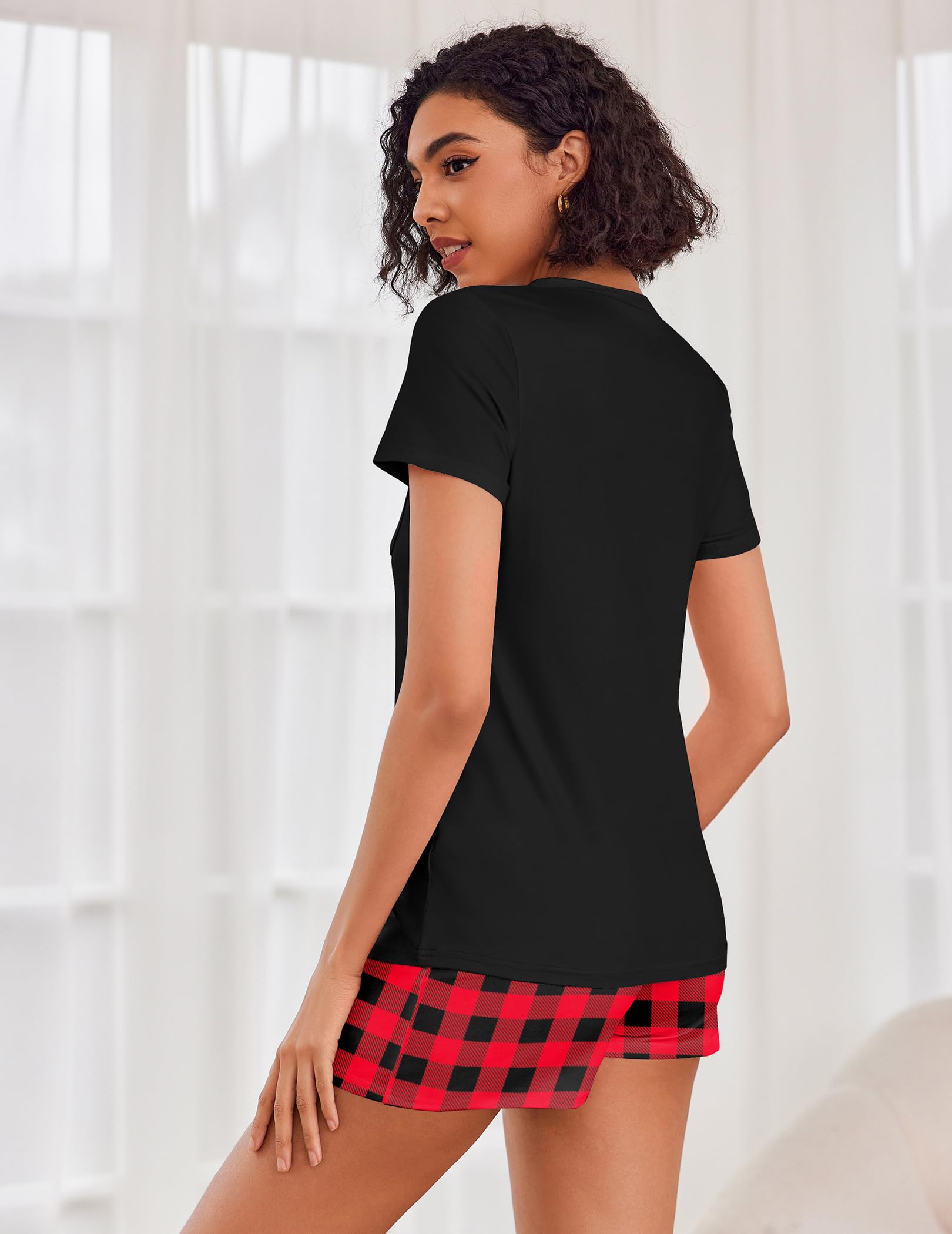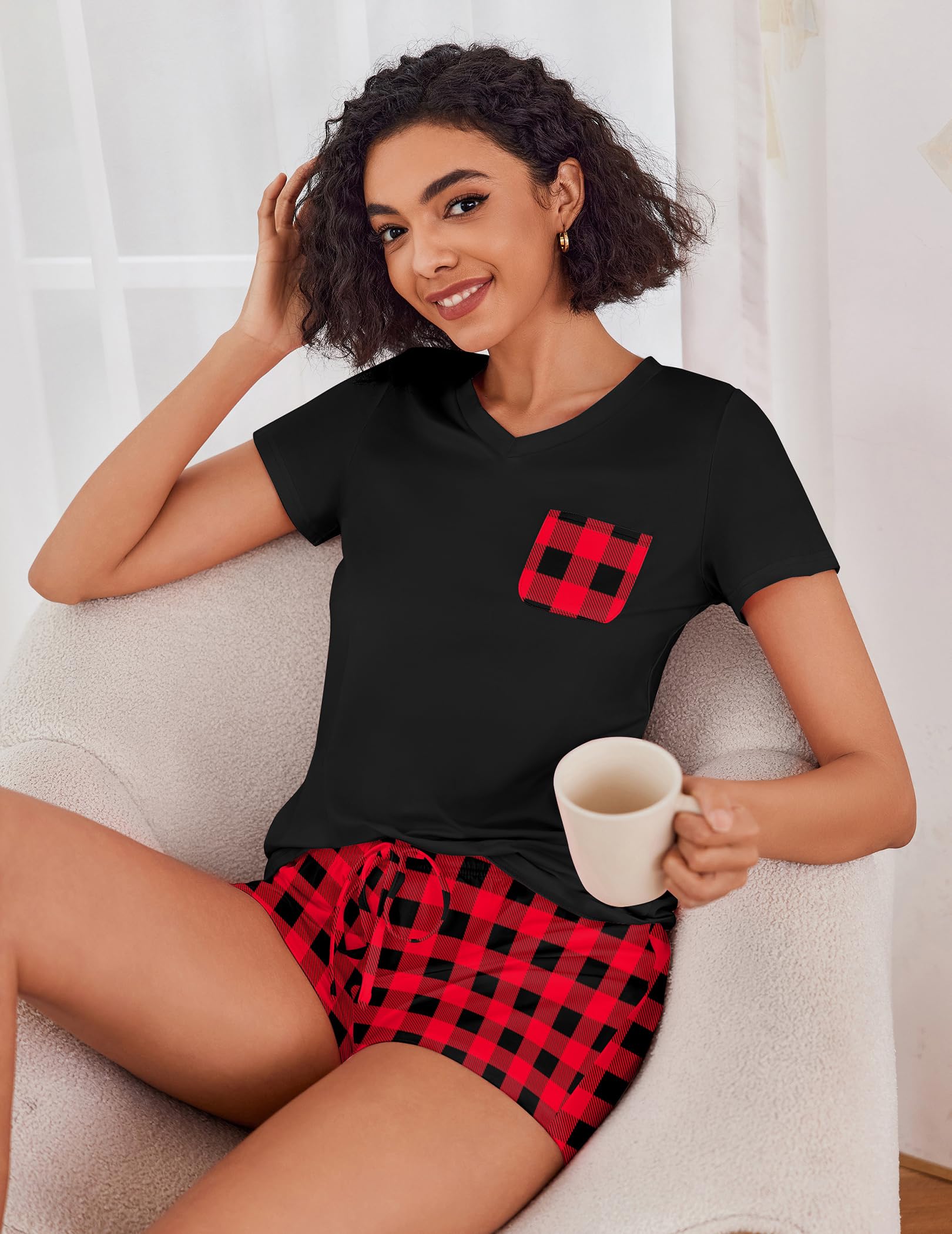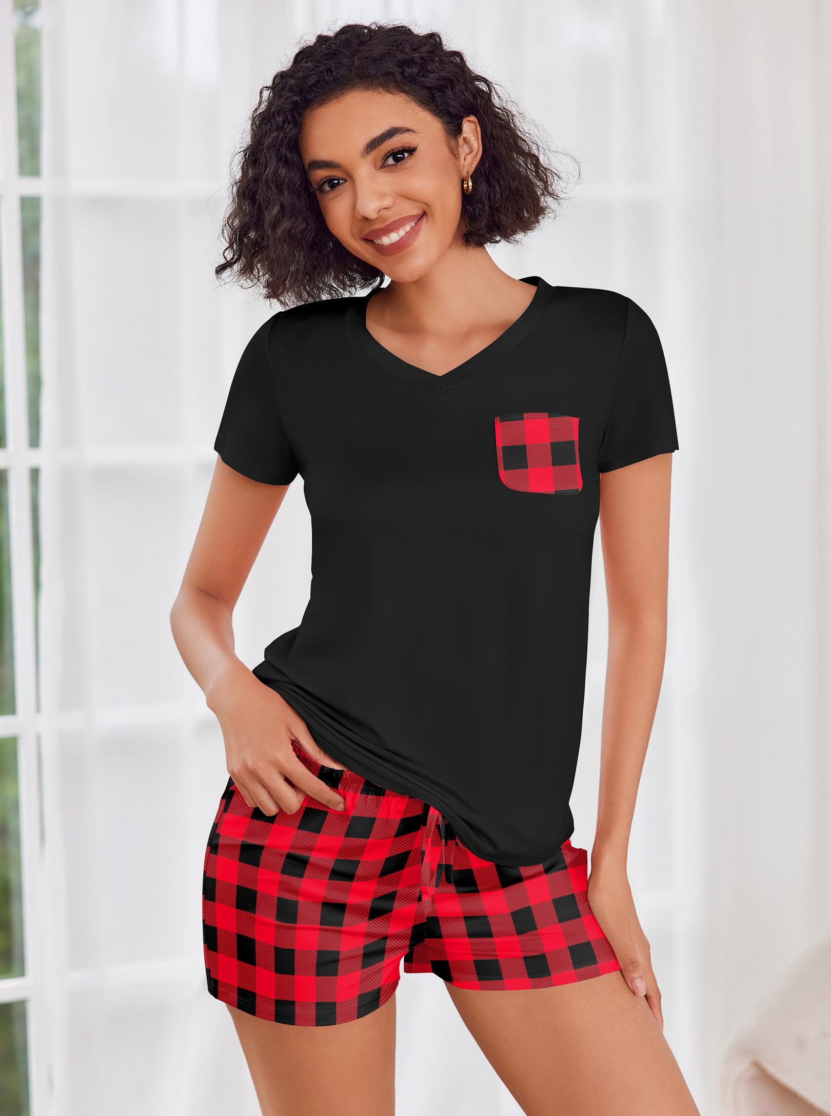 FEATURES: pajama sets for women 2 piece, pj sets for woman, V neck women's pajama sets, short sleeve T-shirt, drawstring elastic waist shorts.