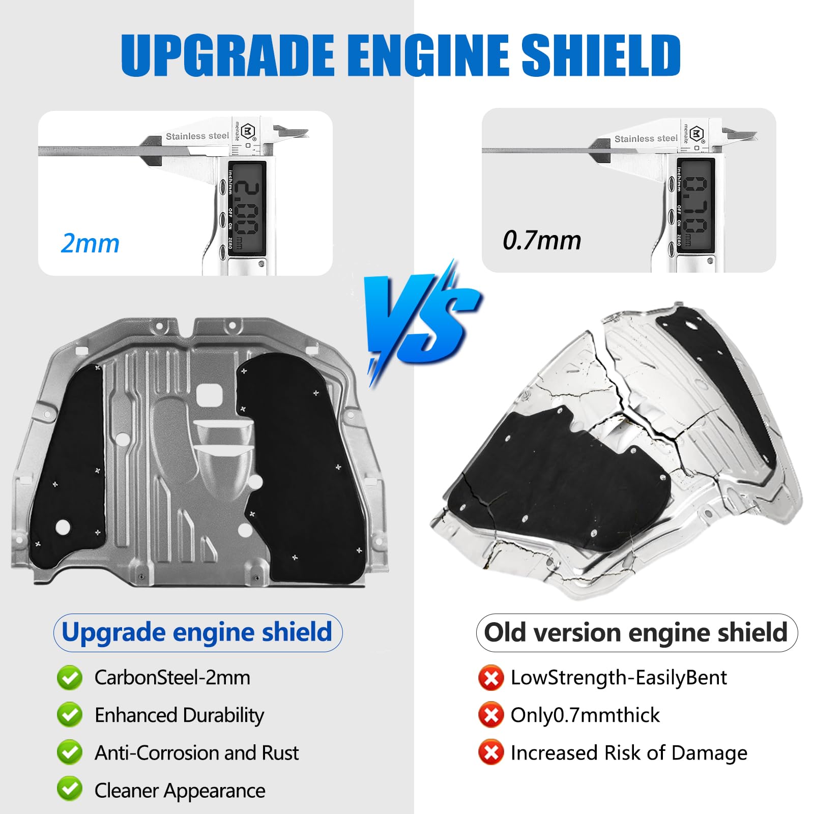 [Premium Material] : This engine splash guard is made of durable 2mm carbon steel, offering a big upgrade over the thin, flimsy guards commonly found on the market. It’s built to resist bending, cracking, and corrosion—providing long-lasting protection that won’t rust. Designed with a 1:1 custom mold, it ensures a secure fit while maintaining superior strength and durability.