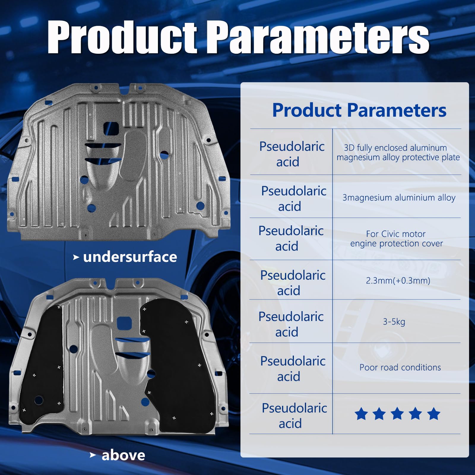 This engine splash shield is made from durable magnesium-aluminum alloy, offering excellent resistance to oxidation and long-term rust prevention. Its lightweight, slim design ensures both strength and durability. Engineered to protect the underside of your engine from impacts, road debris, mud, and water splashes, it helps prevent damage to critical components. The shield fits perfectly with the vehicle’s chassis, adding protection without adding unnecessary weight.
