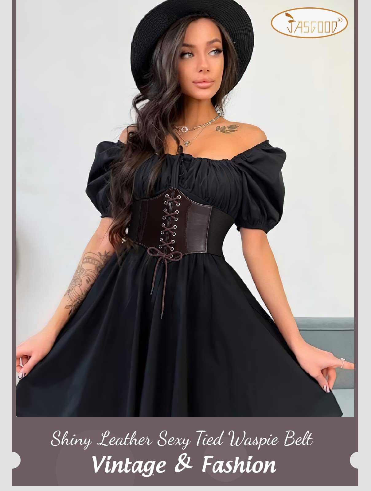 CLASSIC DESIGN– Classic vintage style leather lace-up tied waspie corset belt, quality PU leather front sewed with well elastic wide band, fastened by 3 snap buttons, which is easy to put on and remove. This waspie corset belt is super comfortable to wear. Flatters your waist. The 7.6" width prevents dress belt from rolling up or rolling down in wearing.