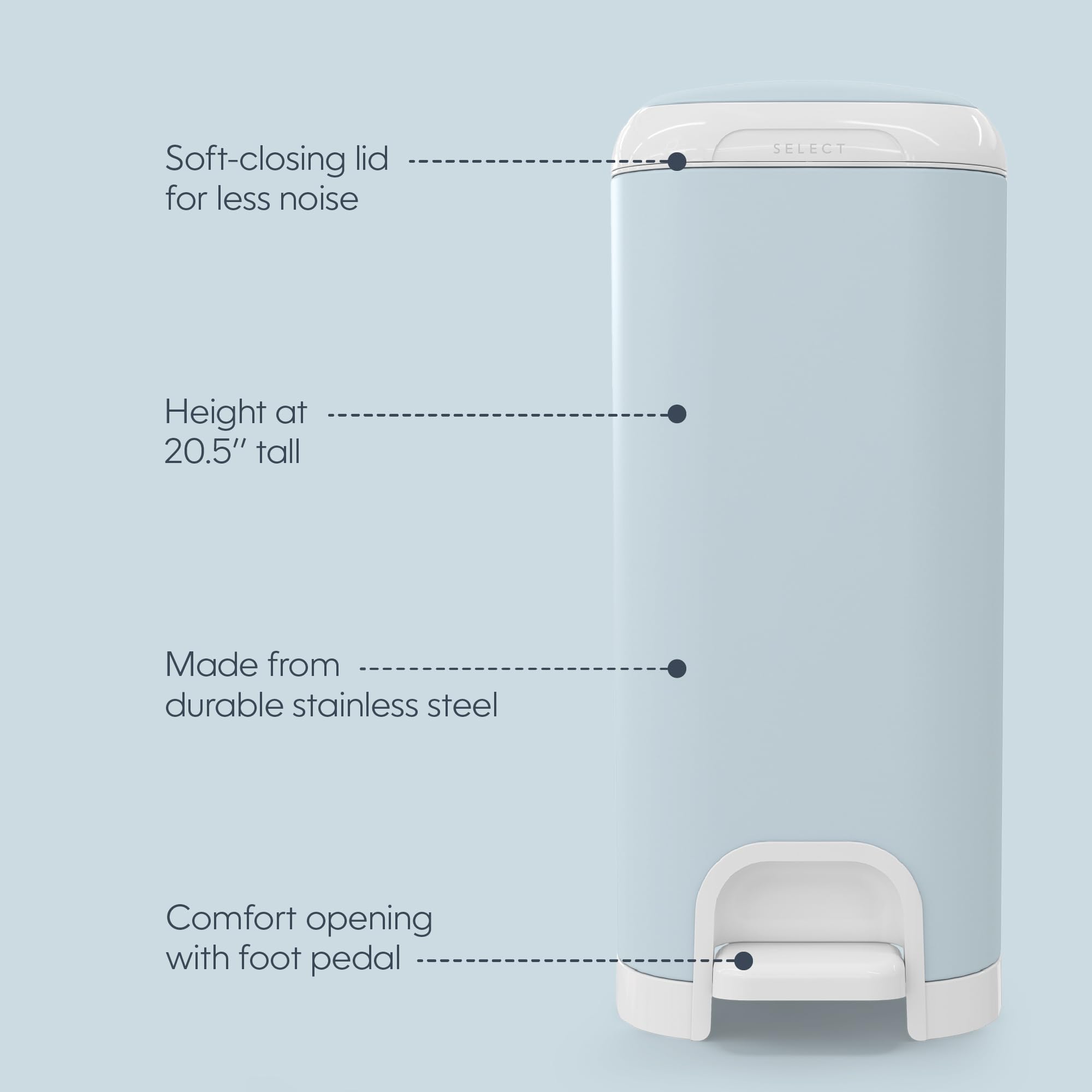 DURABLE & ULTIMATE CONVENIENCE – made of stainless steel and equipped with a foot pedal for easy one-handed operation.