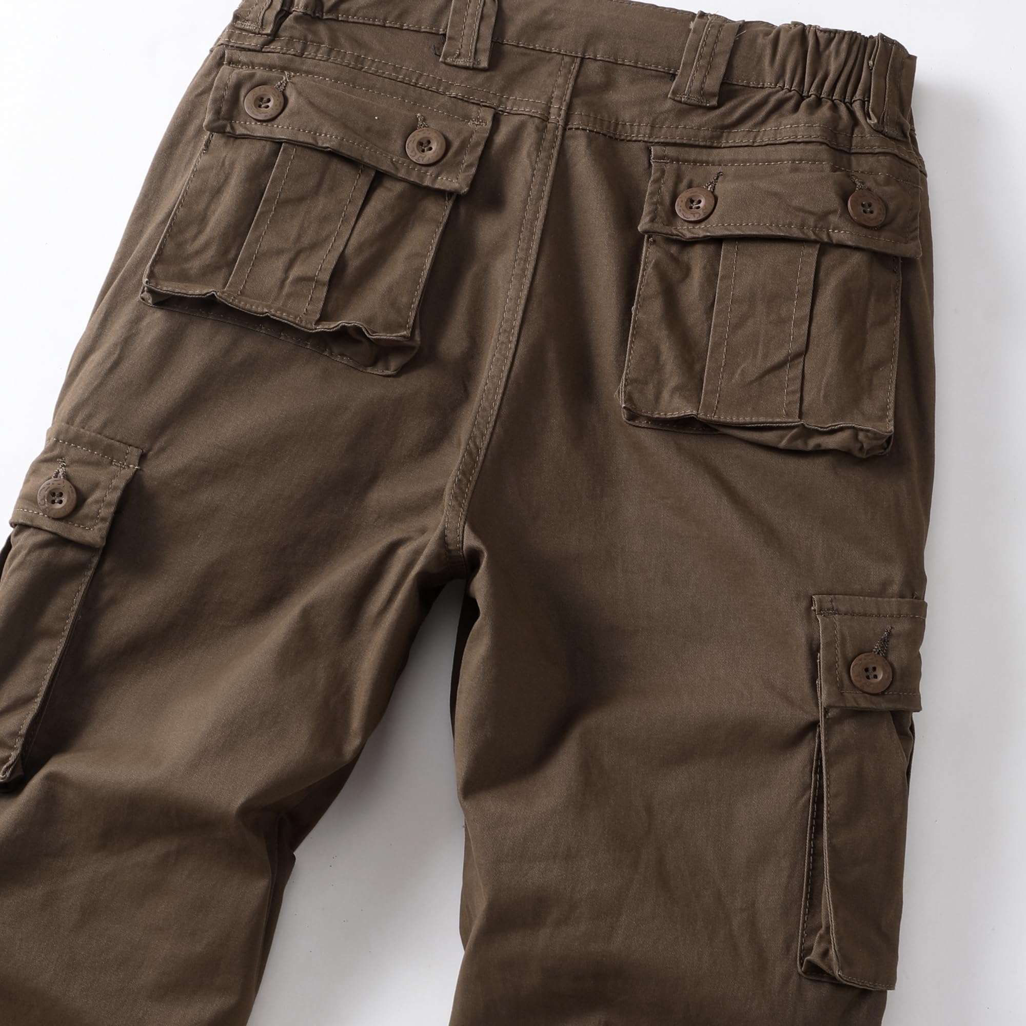 Product Design:Classic cargo pants with 8 pockets, all three-dimensional design with hand pockets x2,extra buttoned flap pockets x2 , side fast opened large pocket x2,rear pockets x2, makes it easier to carry additional personal things,Designed with a relaxed fit through the seat and thigh, these men's casual wear will keep you comfortable during any task.It is made of easy care wrinkle resistant fabrics, roomy pockets & sturdy zippers & buttons.