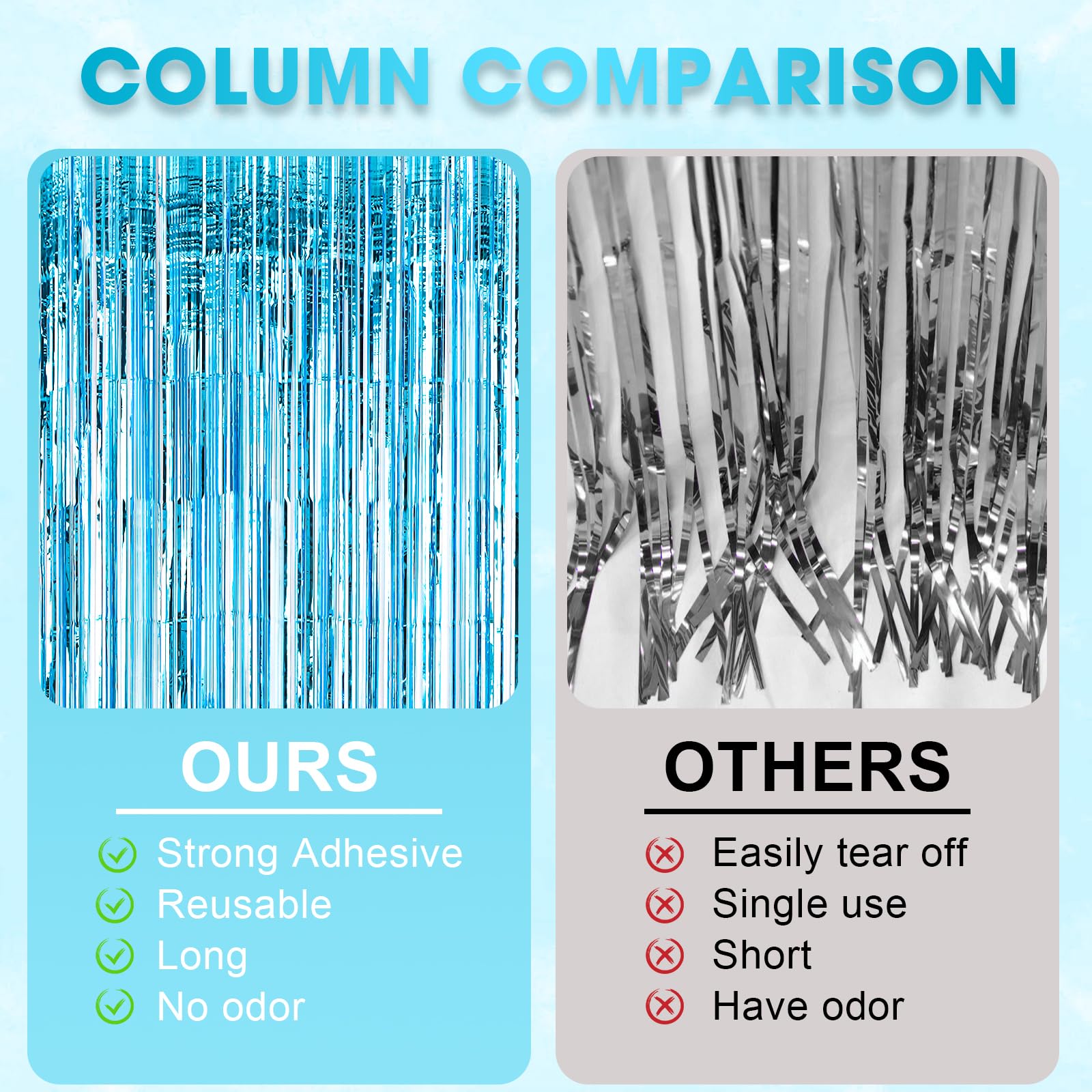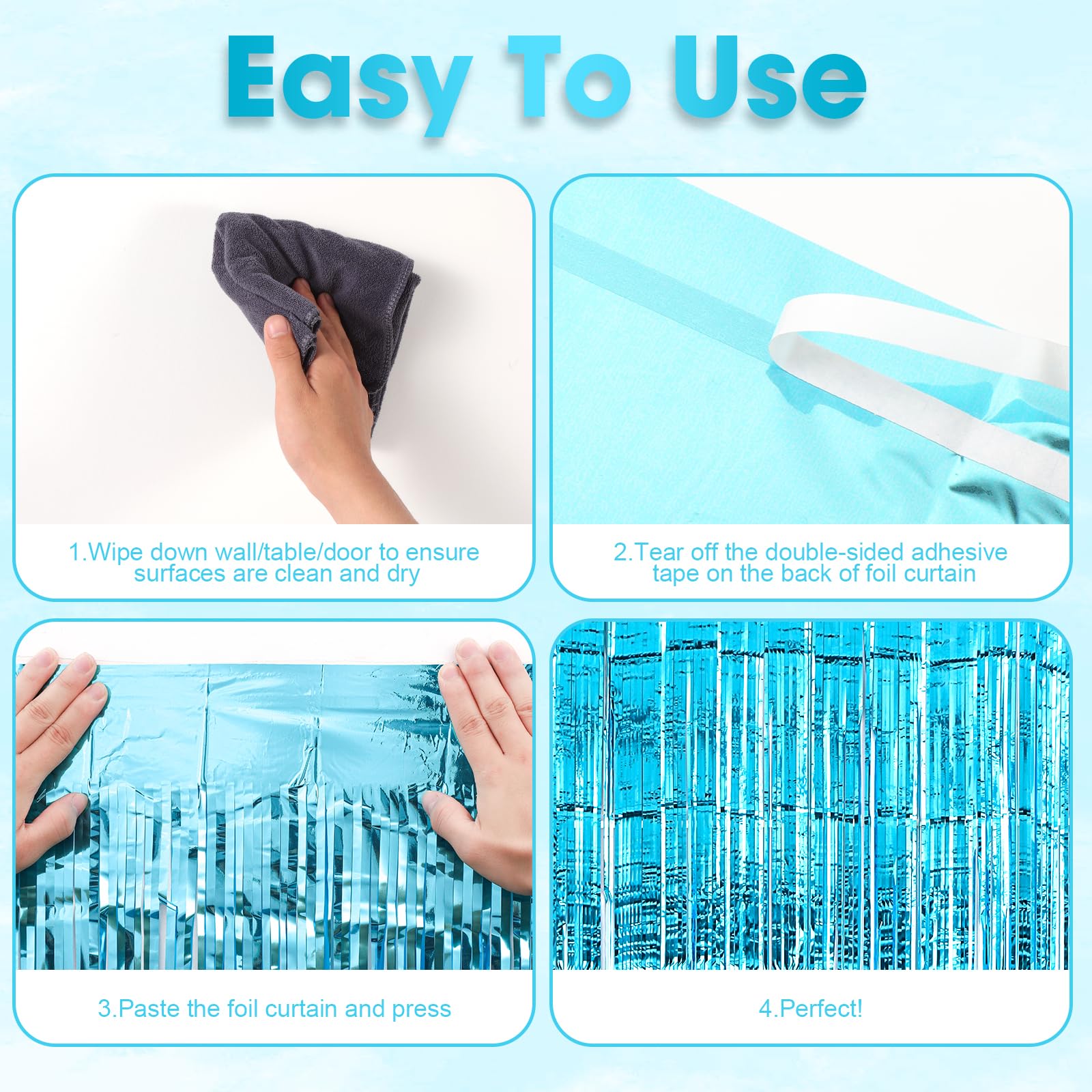 Premium Material: This Light Blue foil curtain backdrop is made of stable tinsel, non-fading, stay shiny and reusable. Unfold it and then enjoy your glittering party