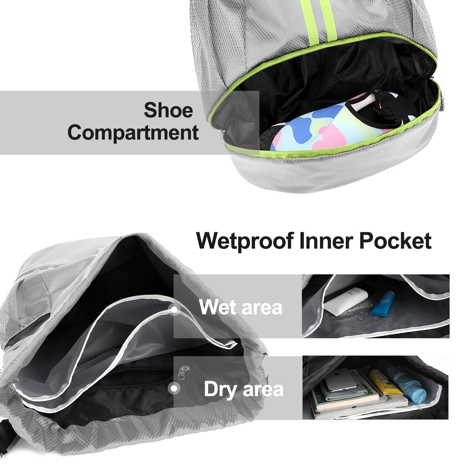 Dry/Wet Separation: Our gym bag is designed with multi-pocket. There have independent shoes compartment and wet proof inner pocket, which makes it convenient for gym-goers, swimmers, and anyone who needs to keep their gear separated and organized