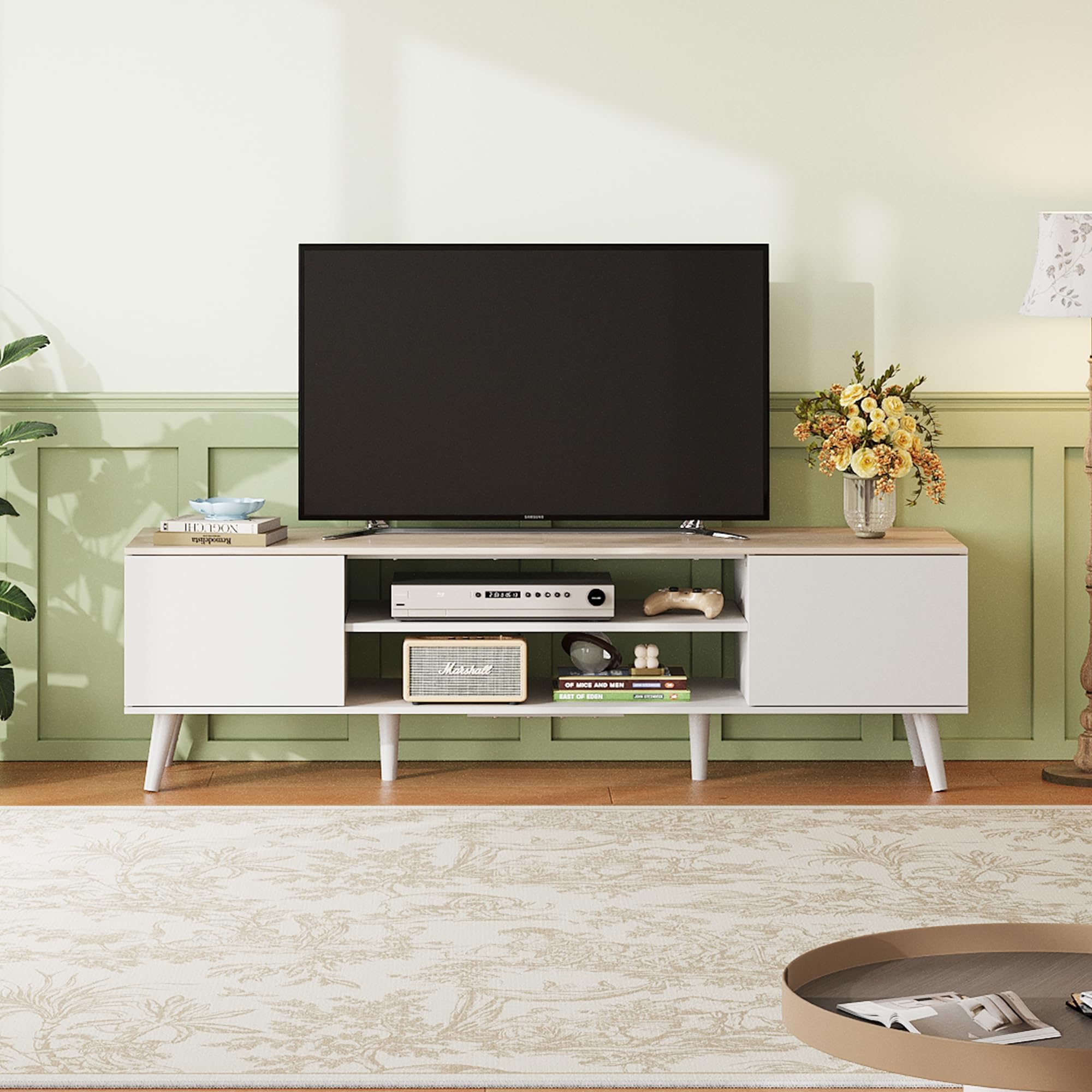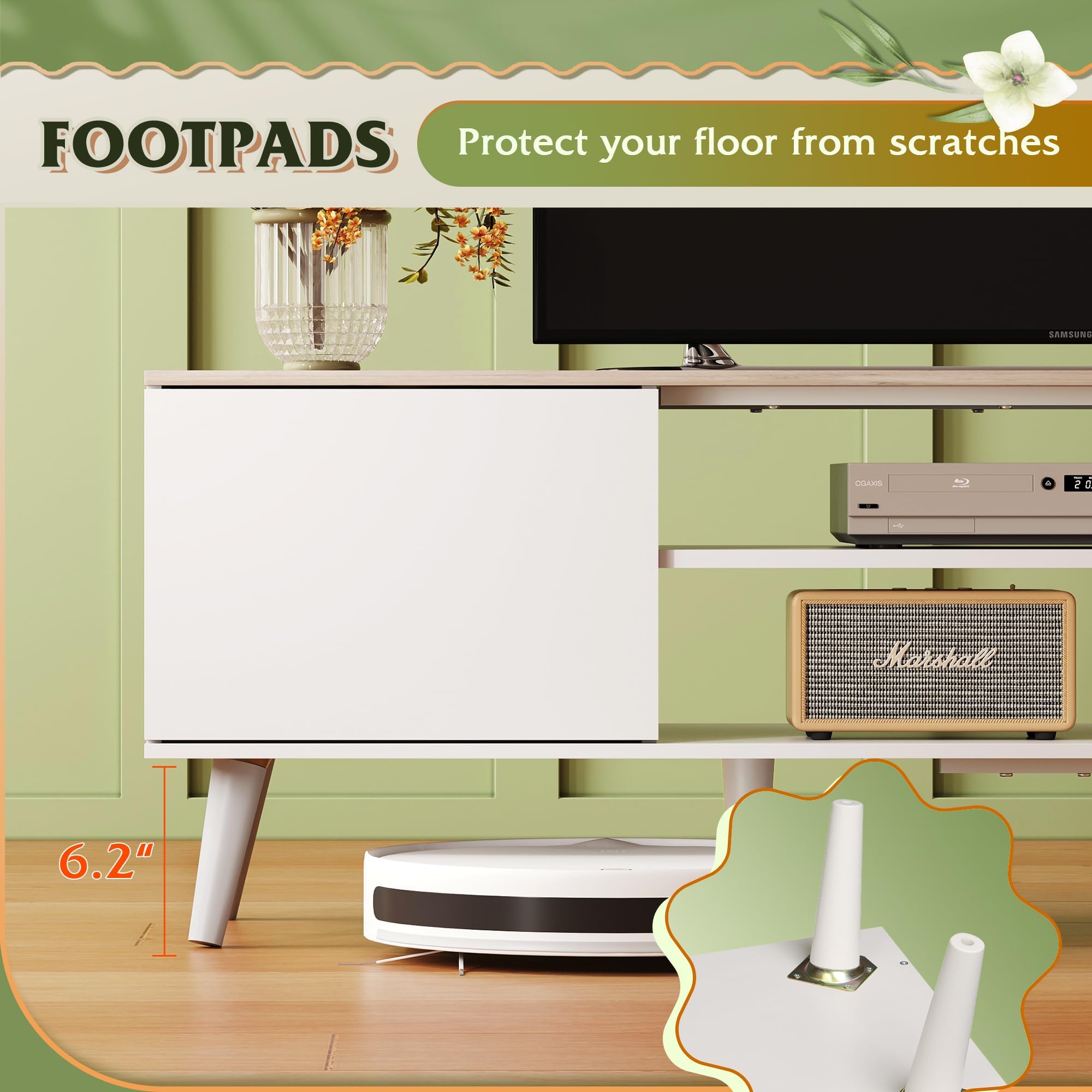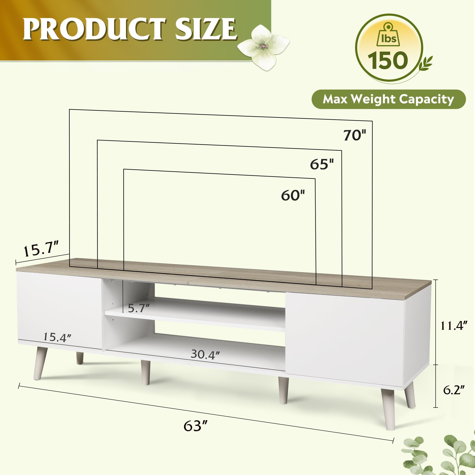 Sturdy Construction: This large tv stand provides robust support for TVs up to 70 inches. Constructed with high-quality engineered wood for exceptional stability and durability. Integrated anti-scratch foot pads firmly protect hardwood, laminate, or tile floors from damage