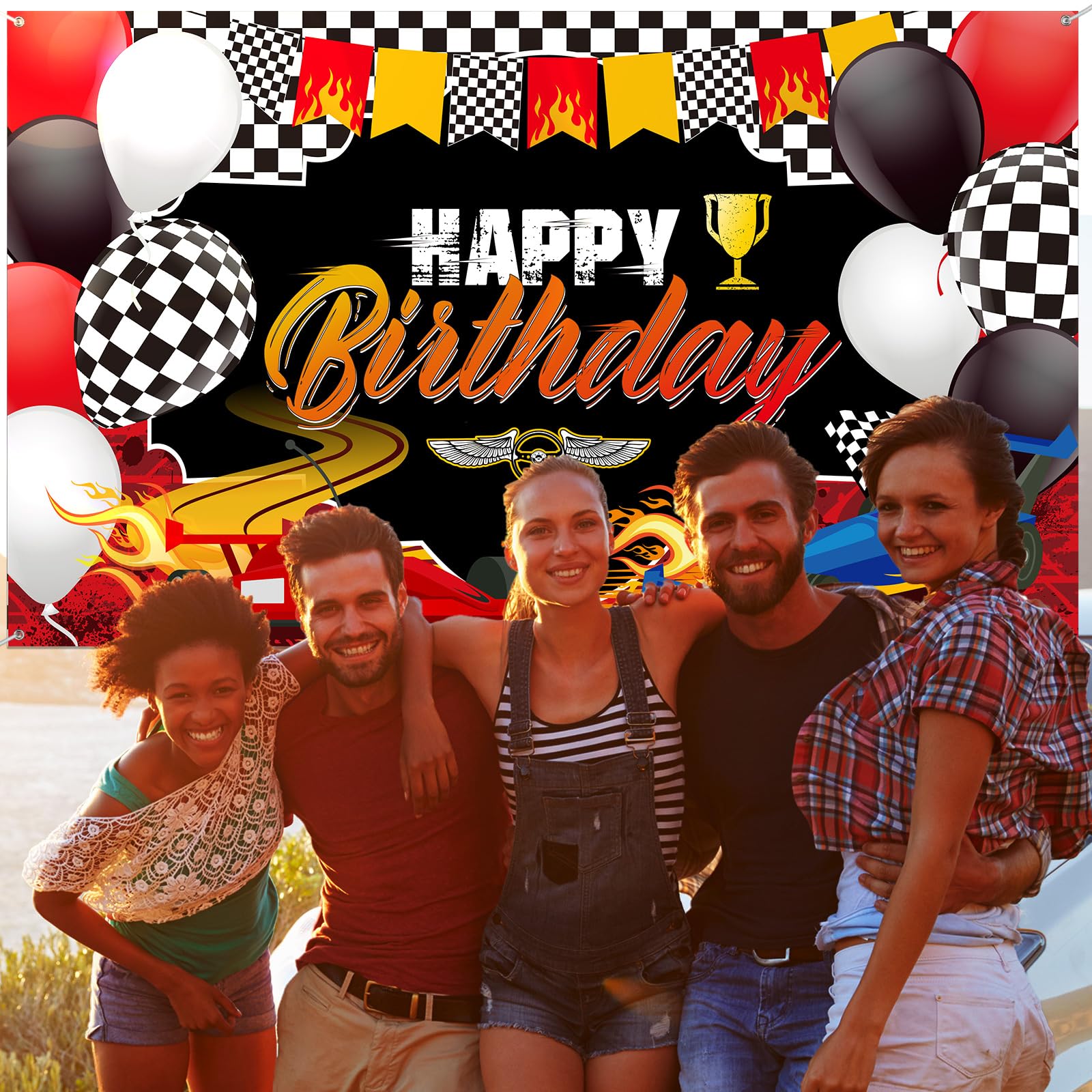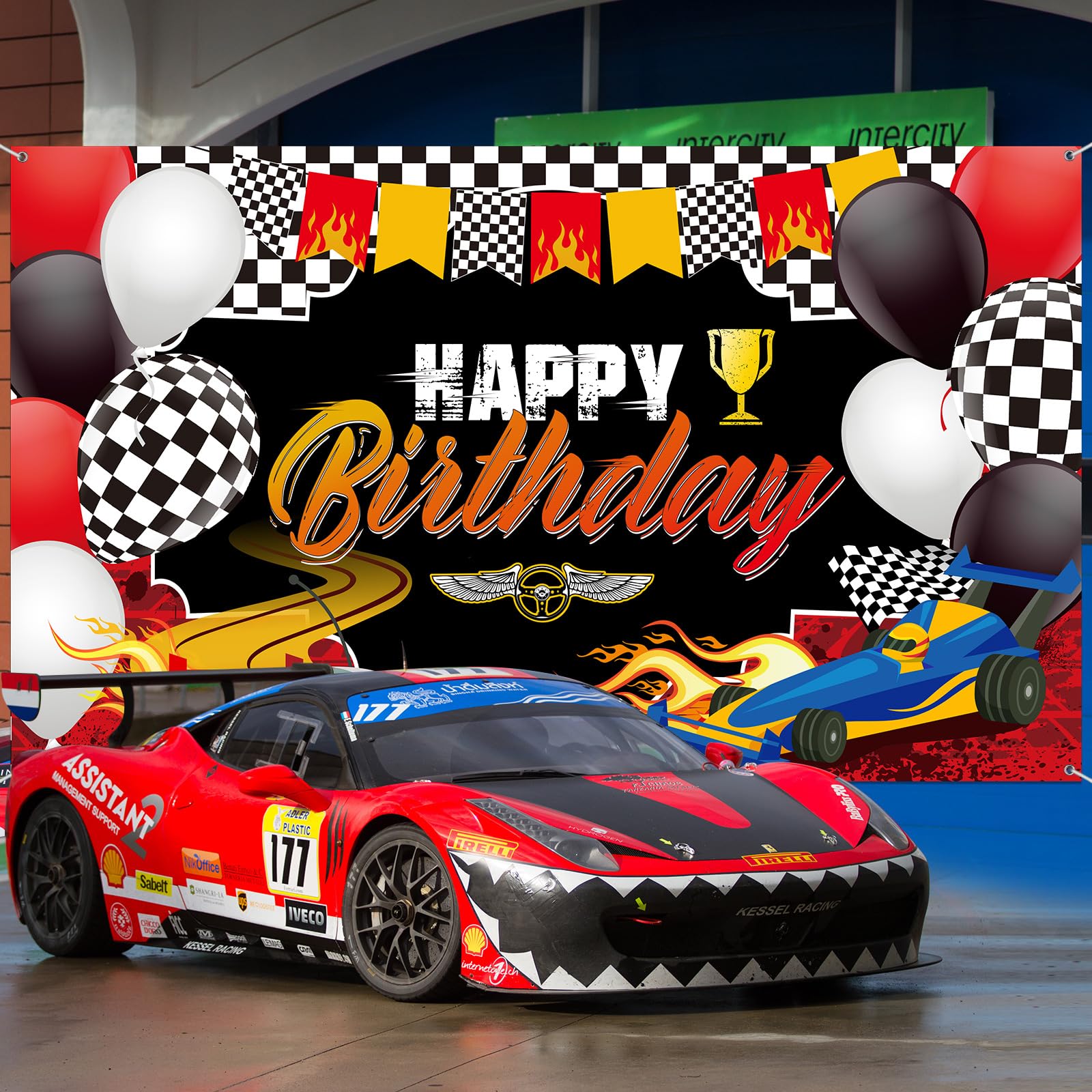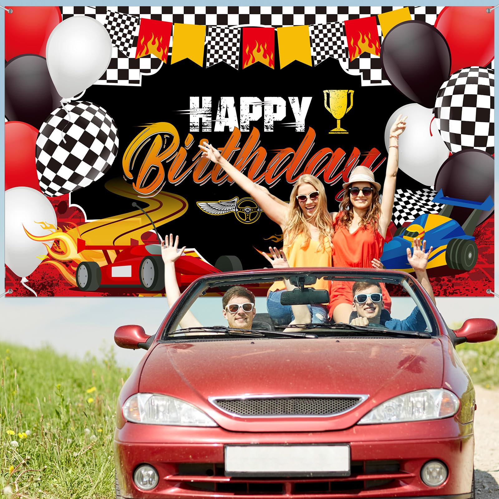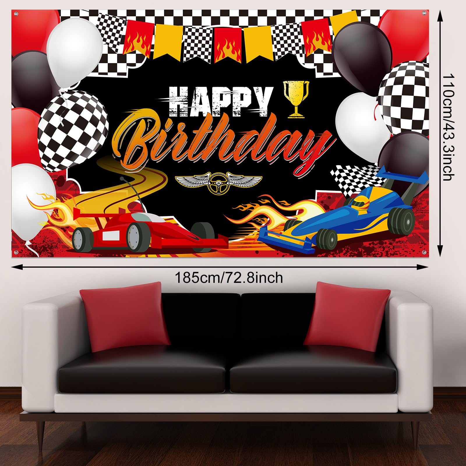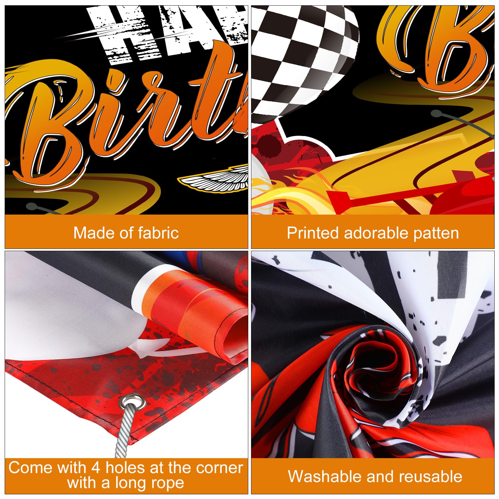 Many kinds of elements: you will receive 1 piece of racing theme backdrop, this backdrop banner have many kinds of elements, such as car, balloons, wheels, black and white checkered flag, racetrack patterns and [Happy Birthday] letters, which can be a cool background for your birthday party