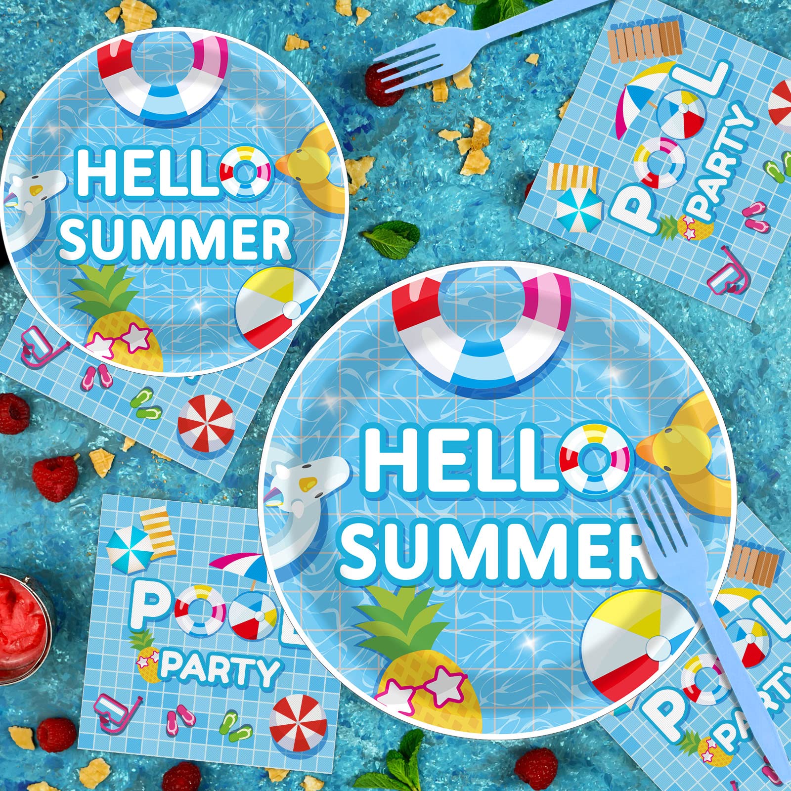 Convenient: These easy pool party party kits are the perfect addition to your summer main party decorations. These paper plate and napkins are disposable after use, saving you time in cleaning up. Perfect for beach parties.