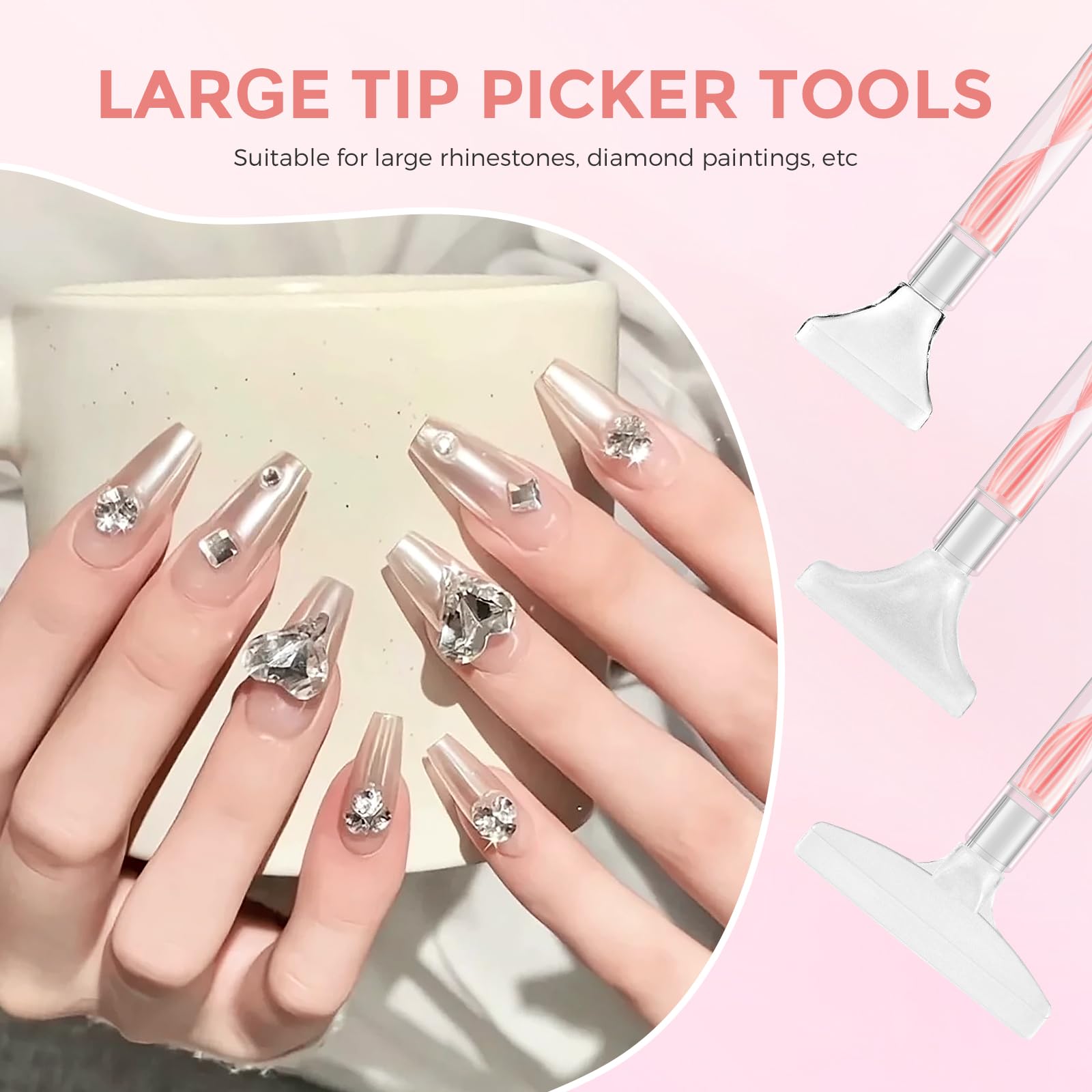 Comfortable Dual-Ended Handle: The rhinestone pick tool is equipped with a high-quality acrylic handle, which is comfortable to hold and not easy to deform, suitable for long-term project work. The end of the pen can be inserted into any replacement pen, which makes the tool extremely flexible and practical.