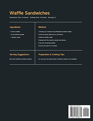 Simple, easy and delicious Hamilton Beach Dual Breakfast Sandwich Maker recipes for healthy meals! Do you want to revolutionize the way you make your sandwiches? Do you want a sandwich maker that you have total control over and is easy to clean? The Hamilton Beach Dual Breakfast Sandwich Maker is the answer to all the questions raised. Breakfast is easier than ever using these delicious recipes and a Hamilton Beach Dual Breakfast Sandwich Maker. The recipes you will read in this cookbook are versatile, starting from your everyday dishes to modern innovations. So don’t waste any time and kick start your journey to a healthier lifestyle with the help of variety of delicious recipes you are about to explore. A morning meal can be a breeze: quick and delicious, easy to make, and ready in five minutes with minimal cleanup afterwards. The Hamilton Beach Dual Breakfast Sandwich Maker Cookbook has a special place in your kitchen library as it contains the following information: A range of mouth-watering dishes—That are quick and easy to prepare but offer amazing taste at the same time. Nutritional info for every recipe—Complete nutritional data can help you plan your meals and meet your daily dietary needs. Clear labeling—Each recipe includes the dietary details for prepare and cook times, along with ingredient information. This cookbook is a great way to get started with your Hamilton Beach Dual Breakfast Sandwich Maker. So, what are you wait for? Scroll up and click on “BUY NOW" and get your copy NOW!
