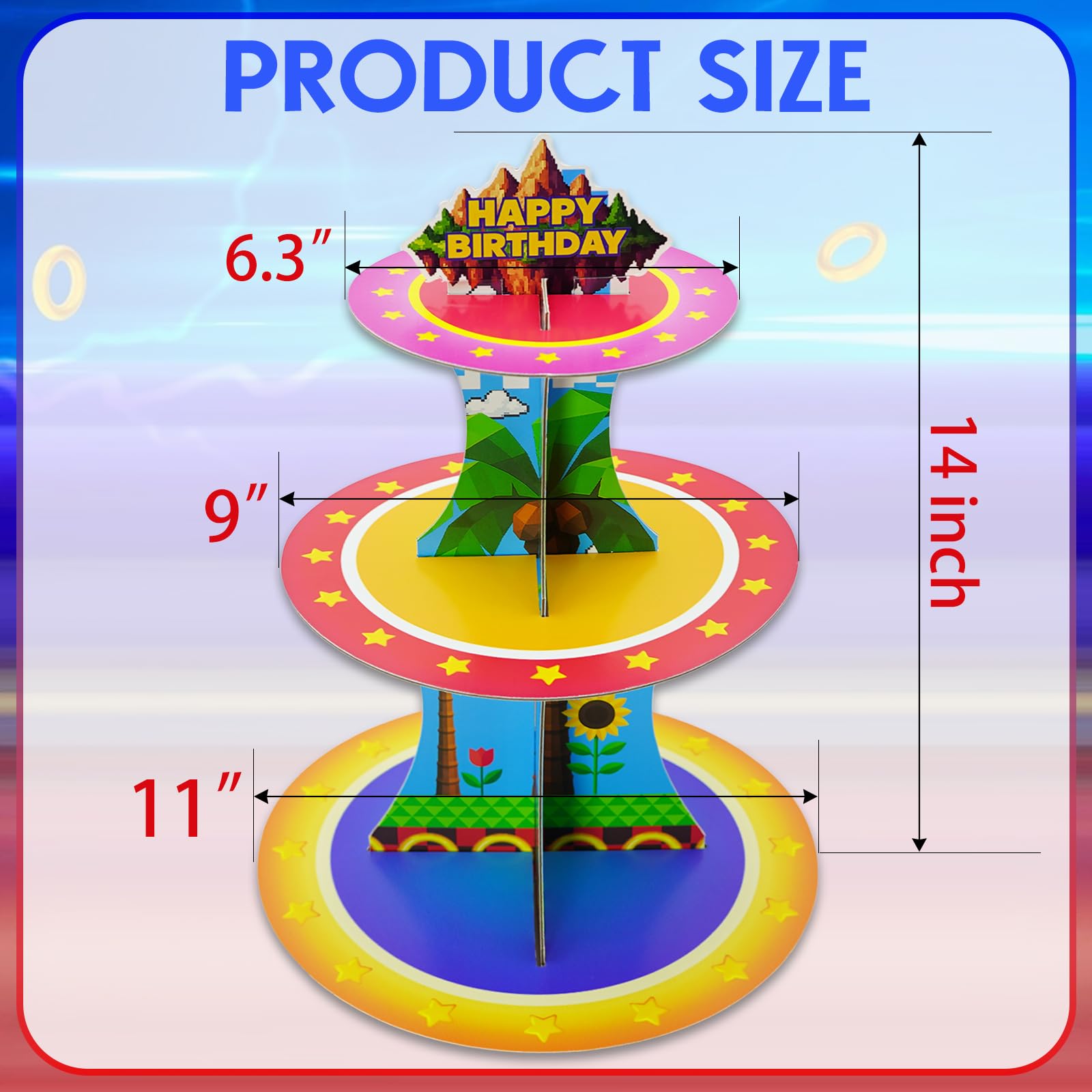 Unique Birthday Theme Design: This birthday decorations cupcake stand features a vibrant color scheme that enhances the celebratory atmosphere and creates a memorable visual impact. With its realistic and eye-catching birthday-themed details, it’s the perfect centerpiece for setting up an unforgettable birthday scene. Sure to exceed everyone’s expectations and add an extra touch of fun to the celebration