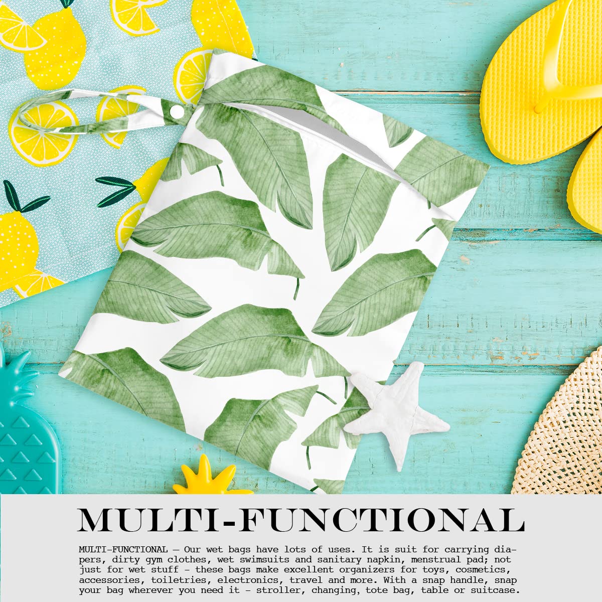 MULTI-FUNCTIONAL – Our wet bags have lots of uses. It is suit for carrying diapers, dirty gym clothes, wet swimsuits and sanitary napkin, menstrual pad; not just for wet stuff - these bags make excellent organizers for toys, cosmetics, accessories, toiletries, electronics, travel and more. With a snap handle, snap your bag wherever you need it - , changing,tote bag, table or suitcase.