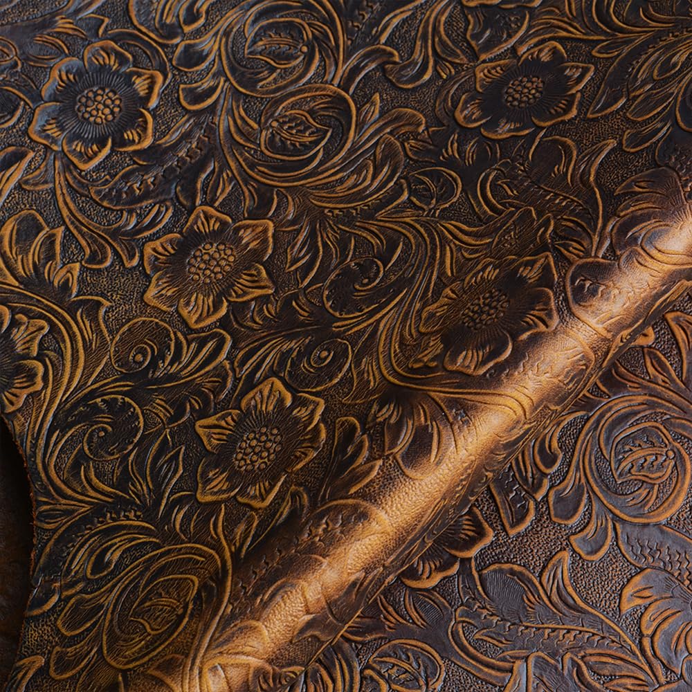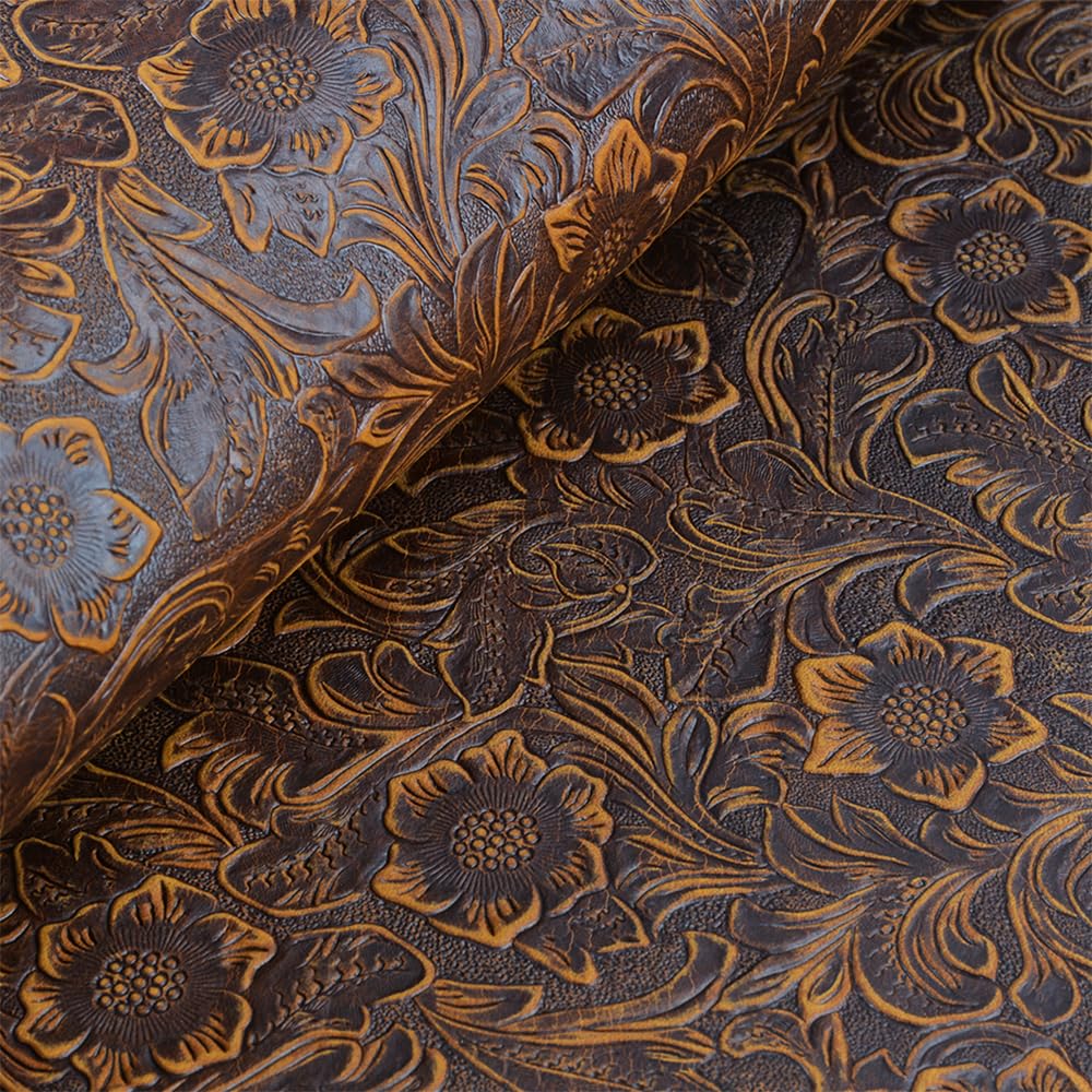 Tooled Genuine Cowhide Leather Western Cowboy, Leather Sheets for Crafts Tooling Sewing Wallet Earring Hobby (Crazy Horse Yellow Brown, 8"x12")