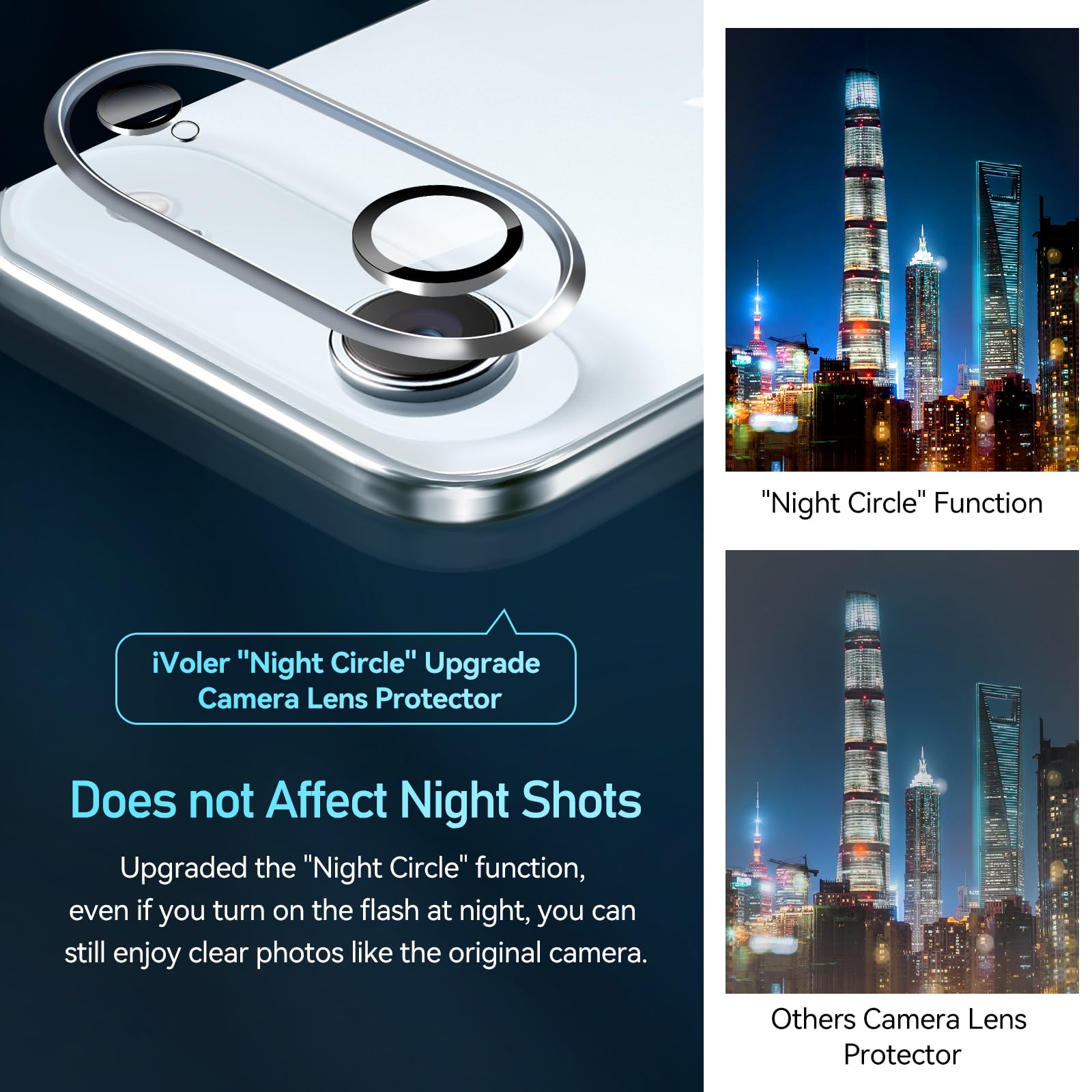 [Innovative Design]The 9H tempered glass protector hole is embedded with night anti-glare coating.Protect your camera and keep the original picture quality.This lens protector is designed for use with open-back phone cases or no case at all. It is NOT compatible with phone cases featuring precise hole alignment (such as camera cutout cases). Applying this protector with such cases may cause misalignment or affect camera performance.