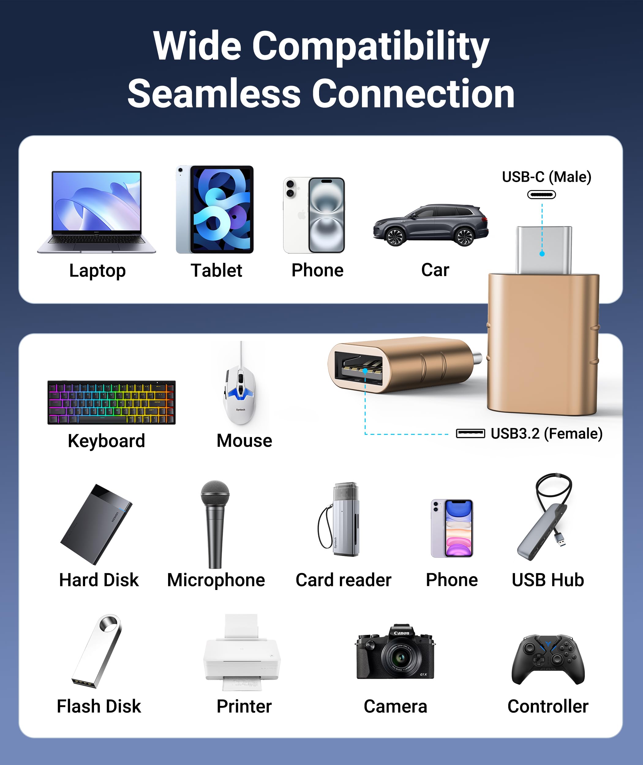 Compatibility: This USB C to USB adapter is compatible with iPhone 17/17e/17 Air/17 Pro/17 Pro Max and MacBook Pro after 2016 and MacBook Air after 2018 and most of the laptops, tablets and smartphones with a USB Type C port