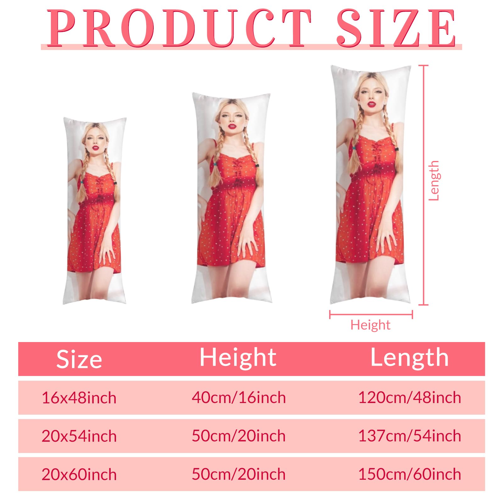 Customizable body pillow come in three sizes: 16x48 inches, 20x54 inches, and 20x60 inches. Personalized 20x54 body pillow cover are suitable for both indoor and outdoor use, providing you with comfort
