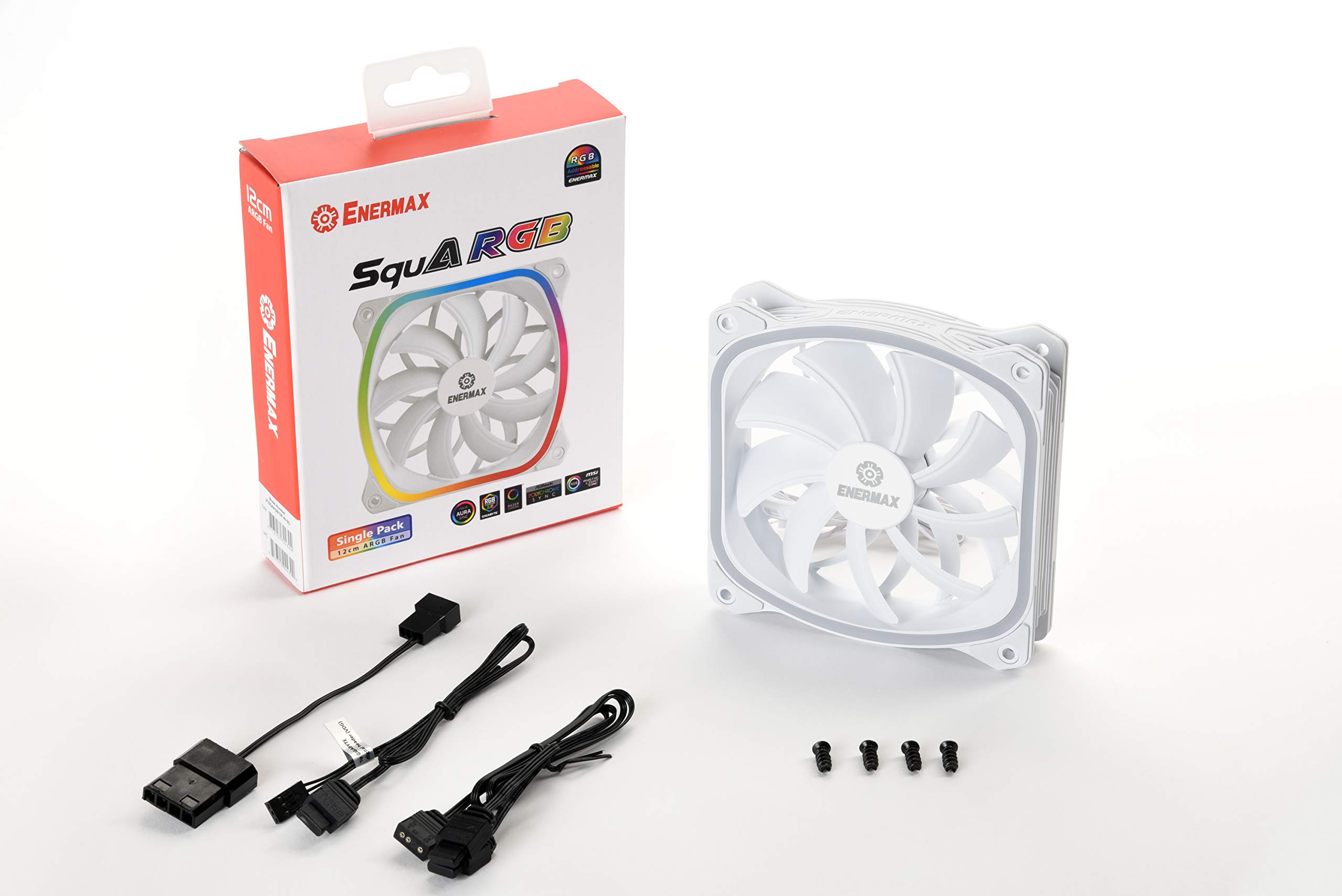 Squa RGB, an addressable RGB fan series, is designed with square-shaped lighting and PWM control. Featuring Enermax LED lighting technology, squa RGB can deliver incredibly BRIGHT and even Lighting. Engineered for high performance and better user experience, squa RGB is characterized by 300Rpm starting speed and up to 40% stronger airflow than other RGB fans. Furthermore, the Vortex frame design generates concentrated airflow and ENERMAX's Air inlet design facilitates airflow effectively. Squa RGB is capable to provide superior airflow and stunning lighting effect.
