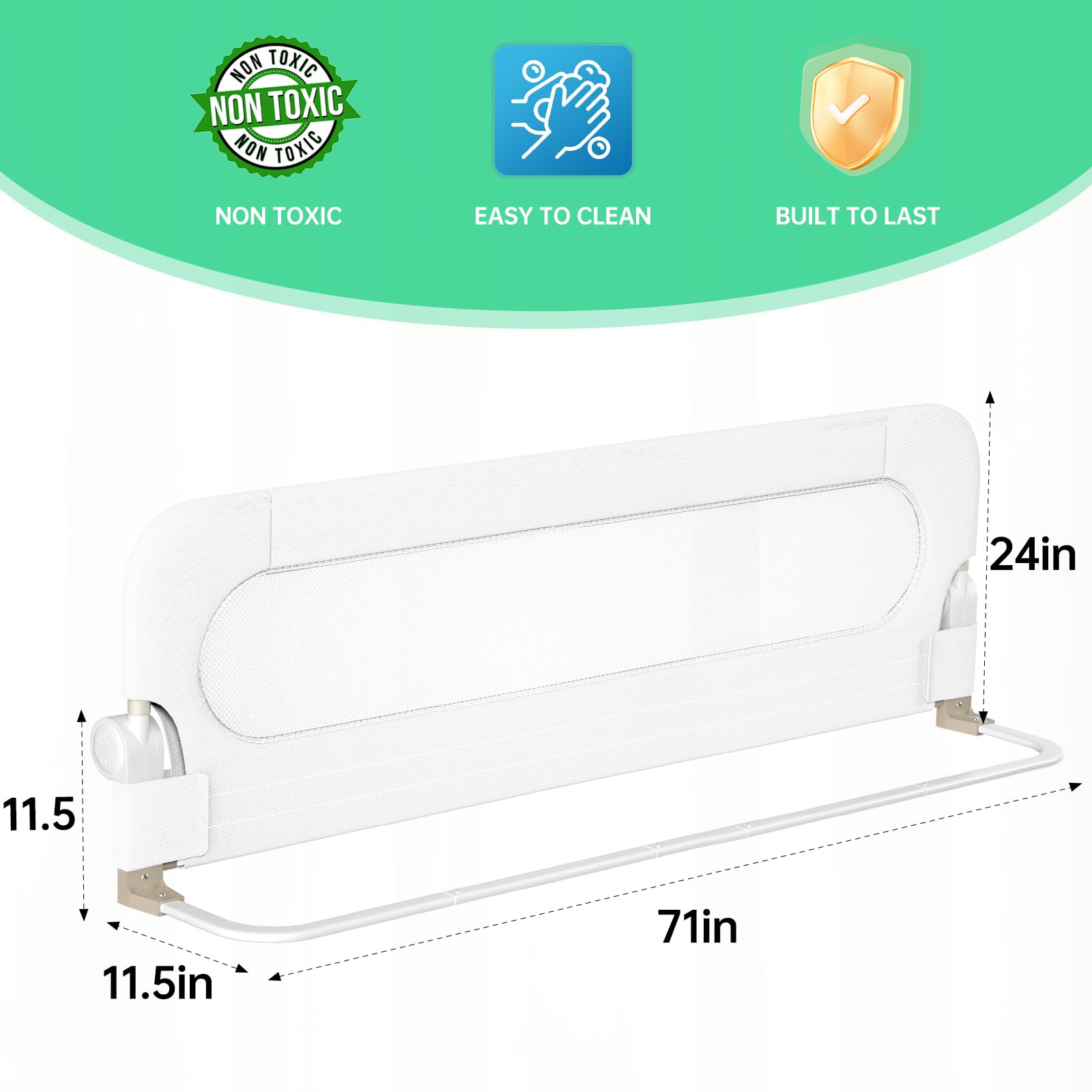 Collision Protection:we have made built-in sponges wherever the guard rail can touch to prevent your child from getting hurt by collision