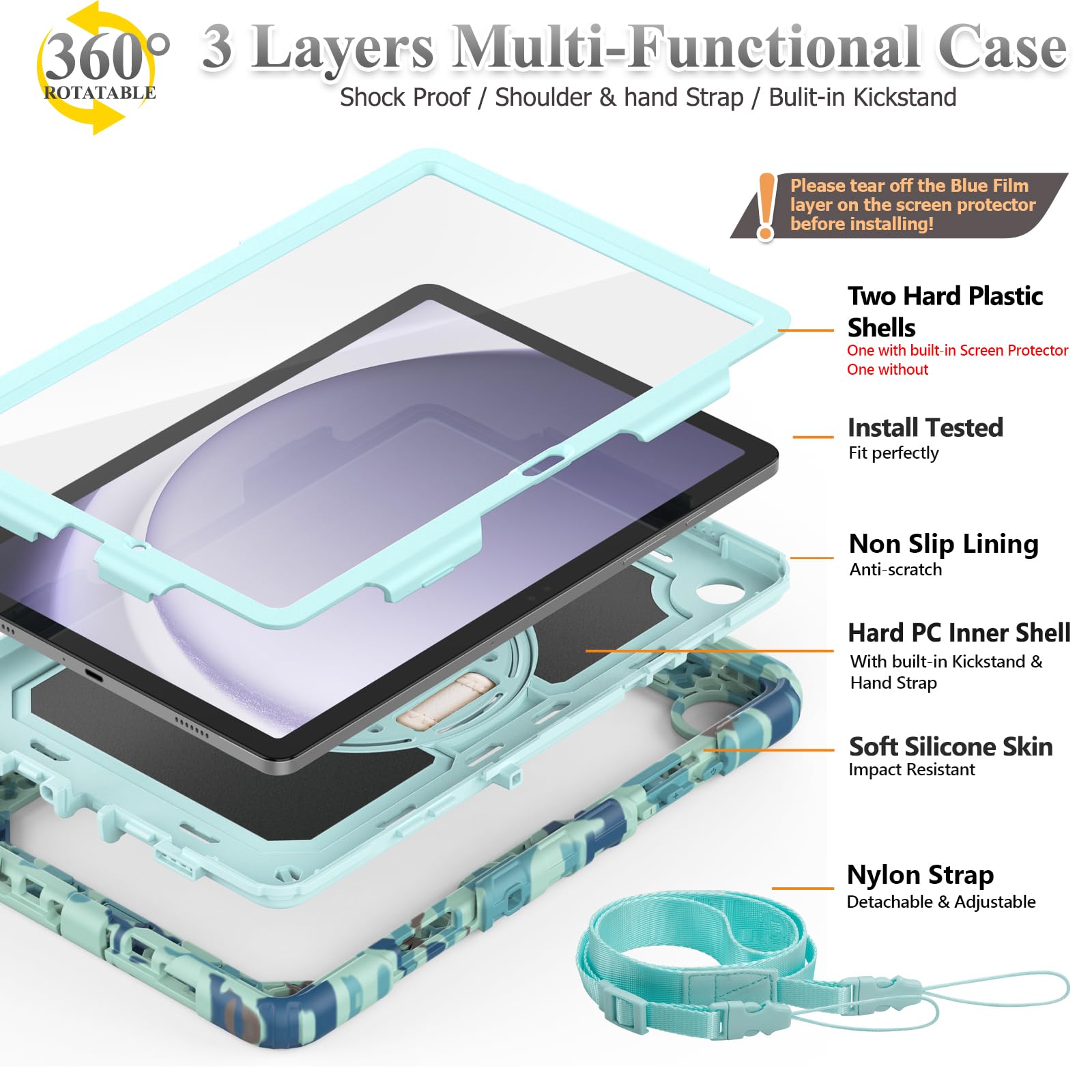 【Portable Shoulder Strap】The strap keeps your Galaxy tab a9 plus away from dropping broken, port plugs of the case prevents dust from entering. Easily carrying device by hanging it anywhere while walking, hiking, driving, traveling or entertaining activities outside