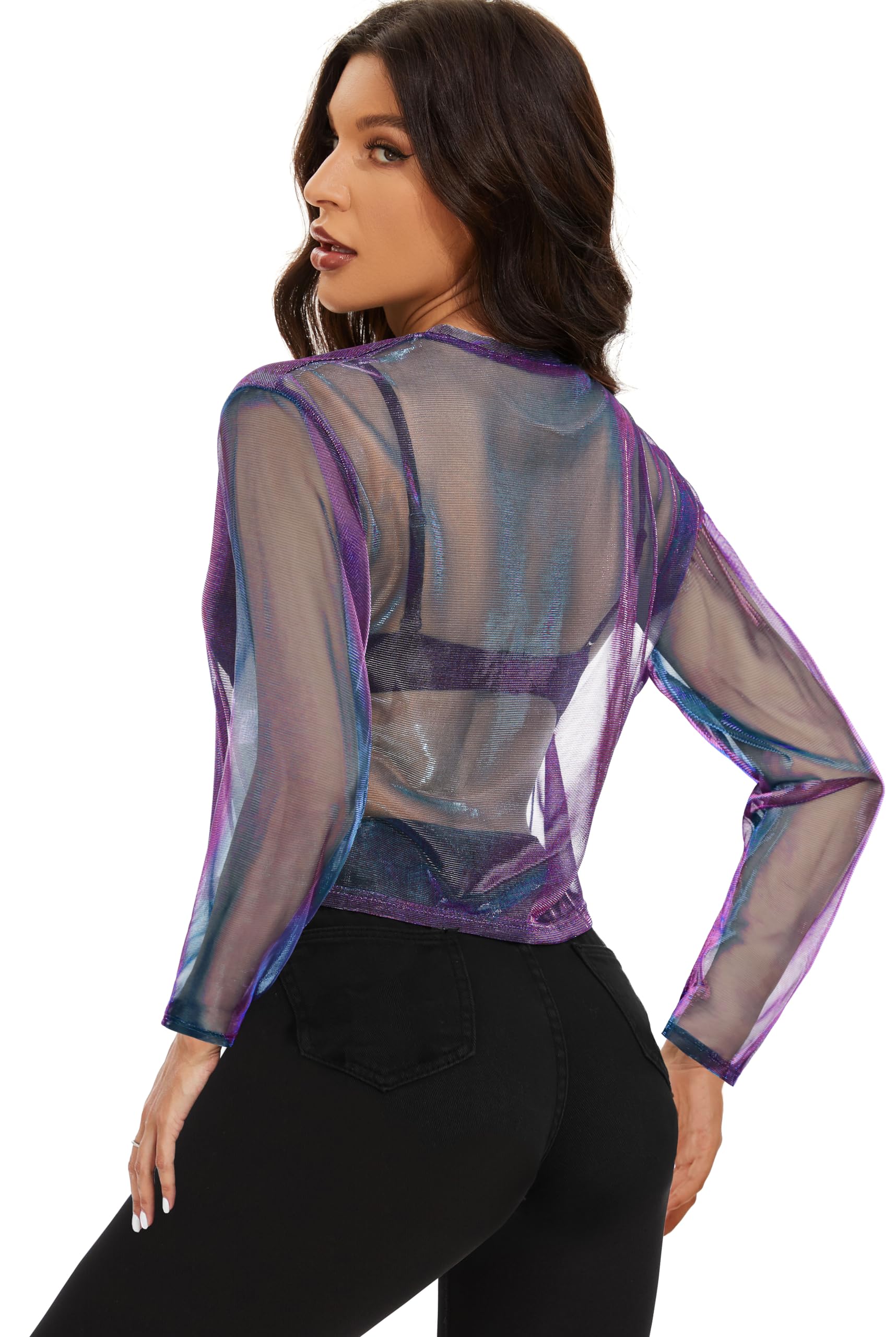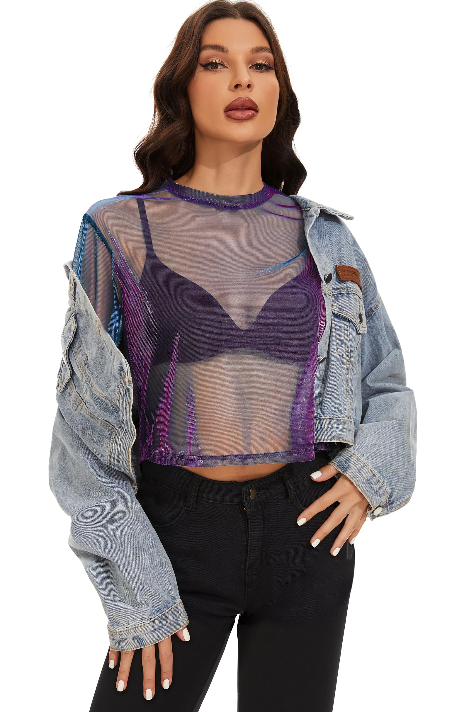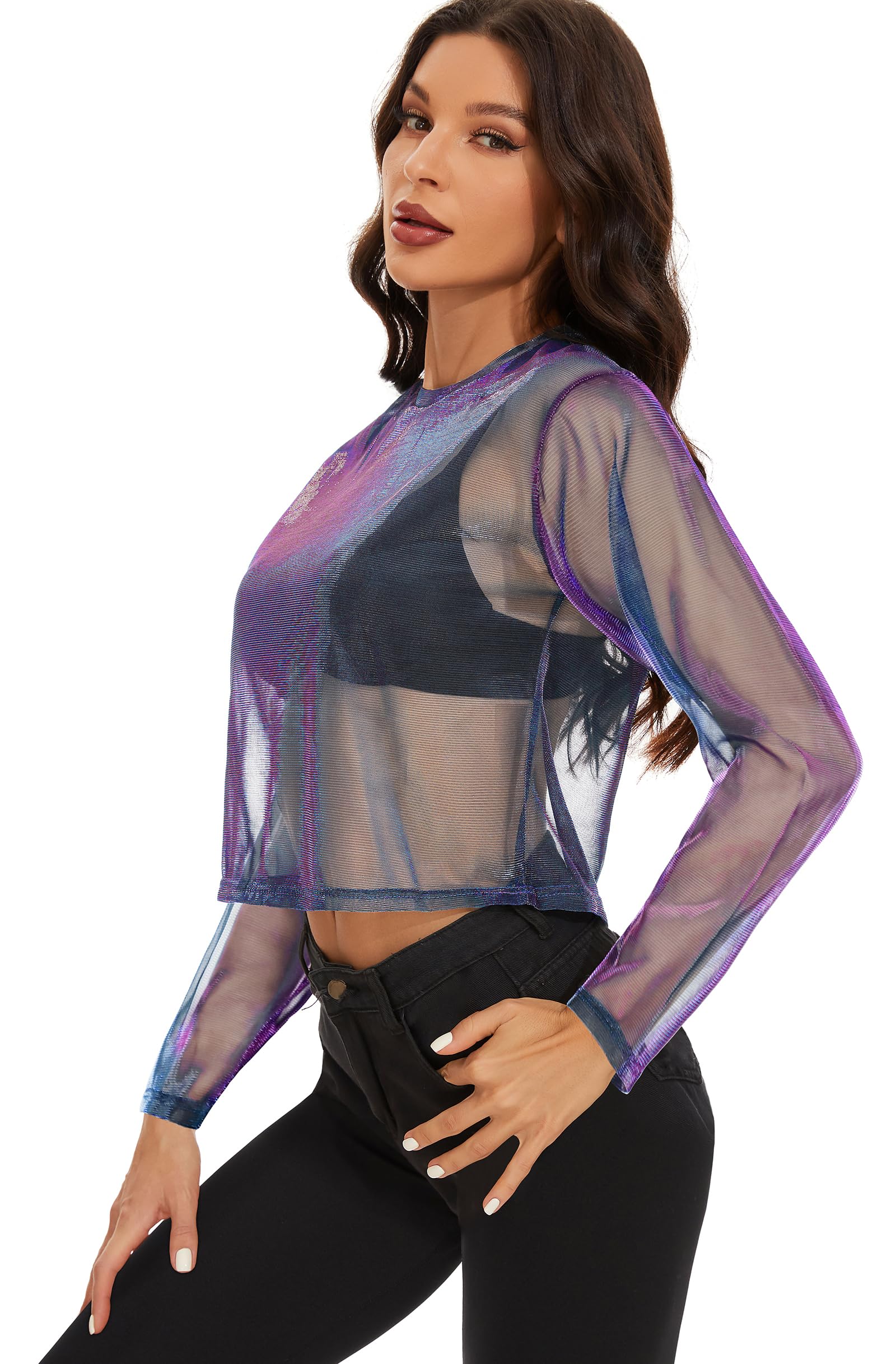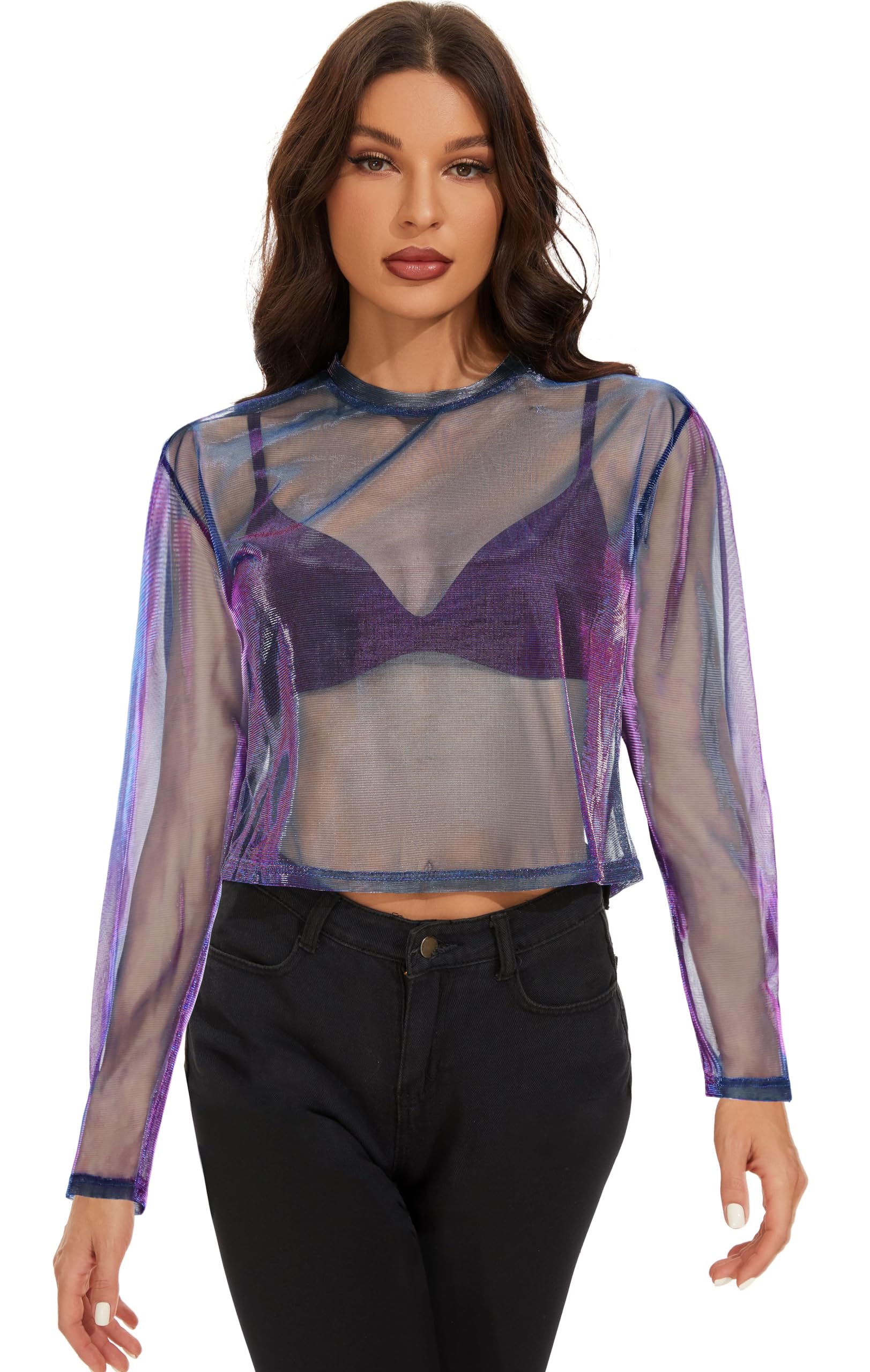 Feature: Mesh top, See through, Long sleeves, Round neck, Regular style, Casual loose fit, sheer tops can enhance the fashion sense of your outfit.
