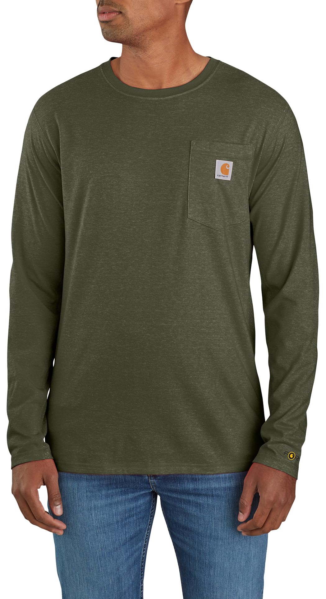 Description Made to withstand warm, sunny days. This men's Carhartt long-sleeve t-shirt helps you keep your cool through long hours under the sun. UPF-rated, cotton-blend fabric fights sweat and dries fast for all-day comfort. Ventilated panels keep air circulating.