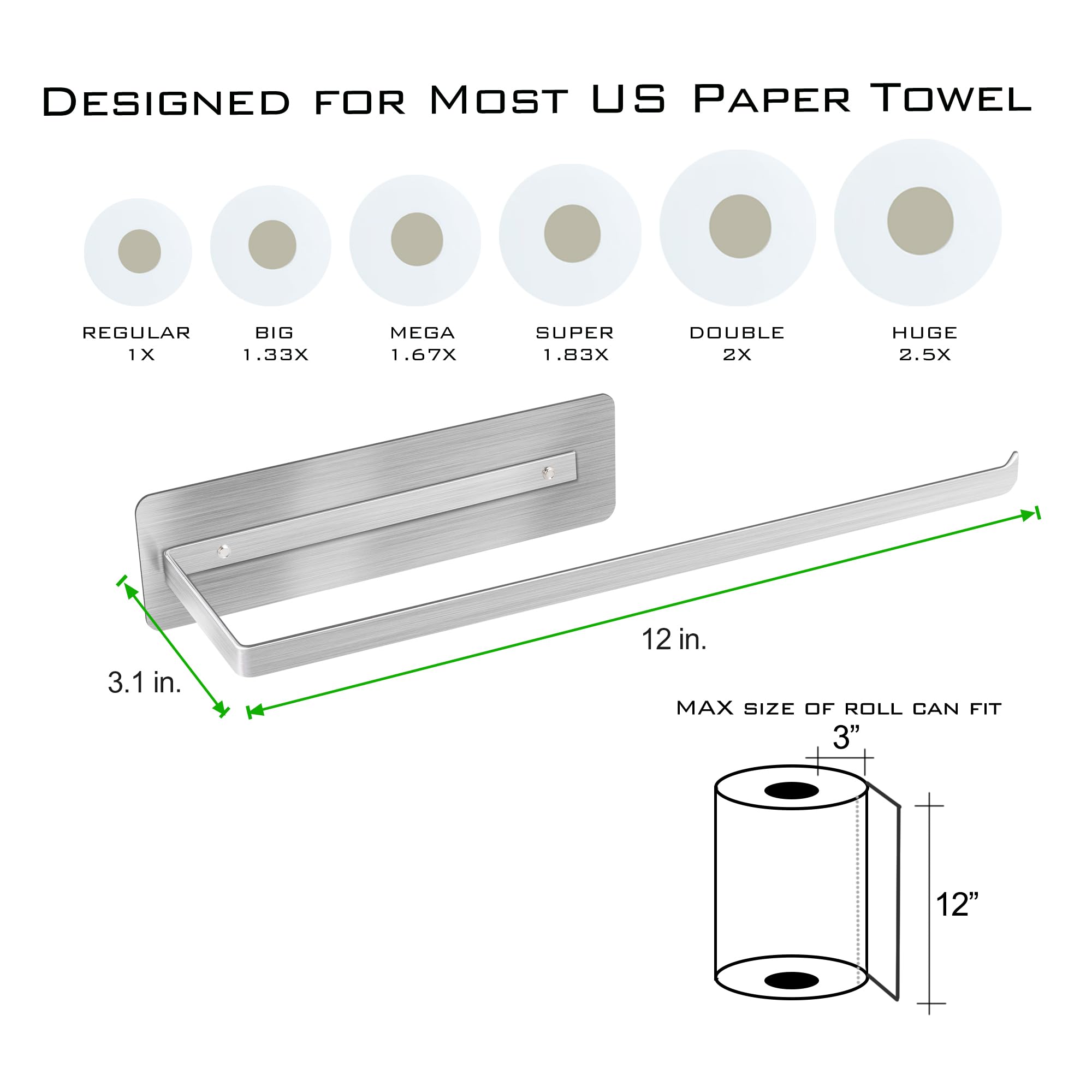 Fit Most Size Paper Towels - The magnetic paper towel holder can be installed vertically or horizontally to suit your preference or available space. Measuring 12”(L) x 3”(H), it's suitable for most paper towel sizes.