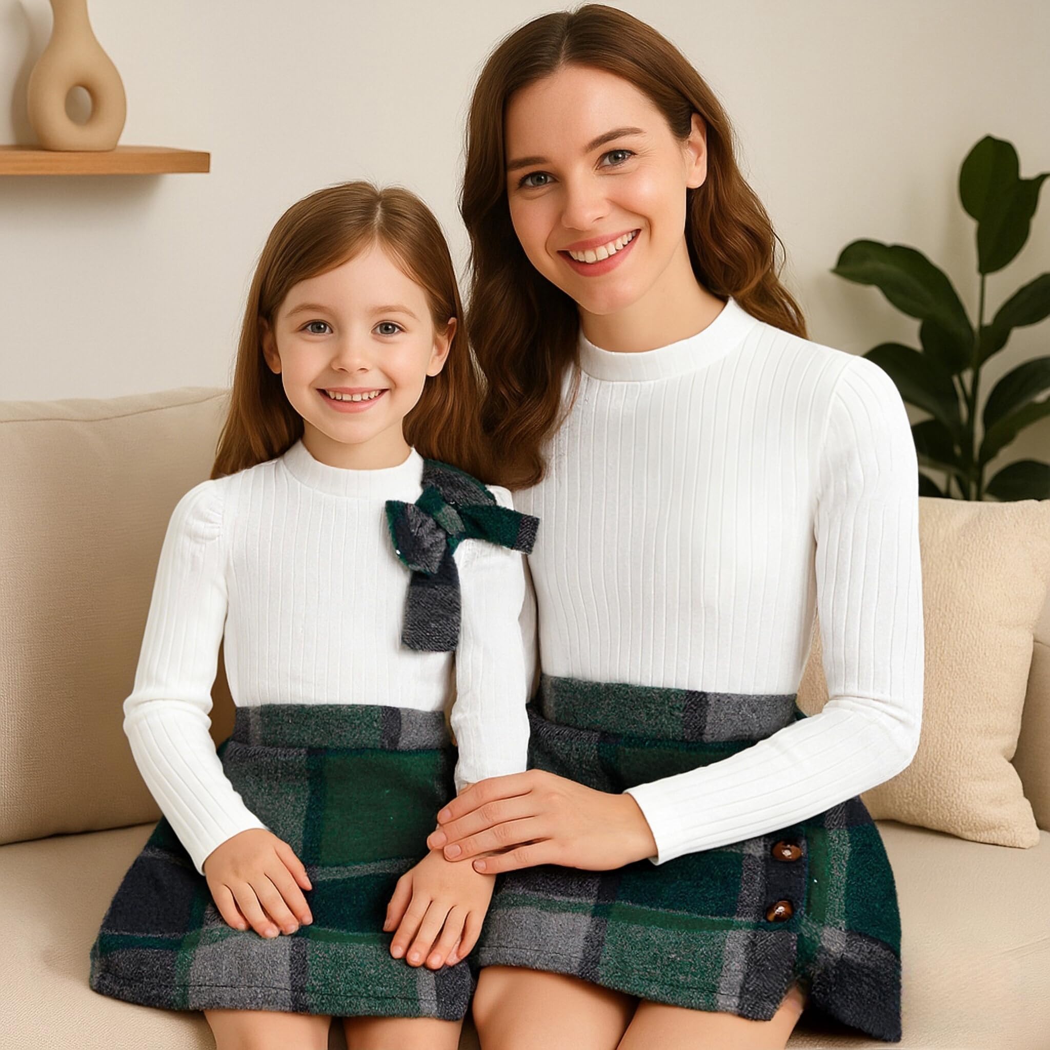 Package included: 1 x Long Sleeve Sweatshirt Tops +1 x Plaid Mini Skirt.