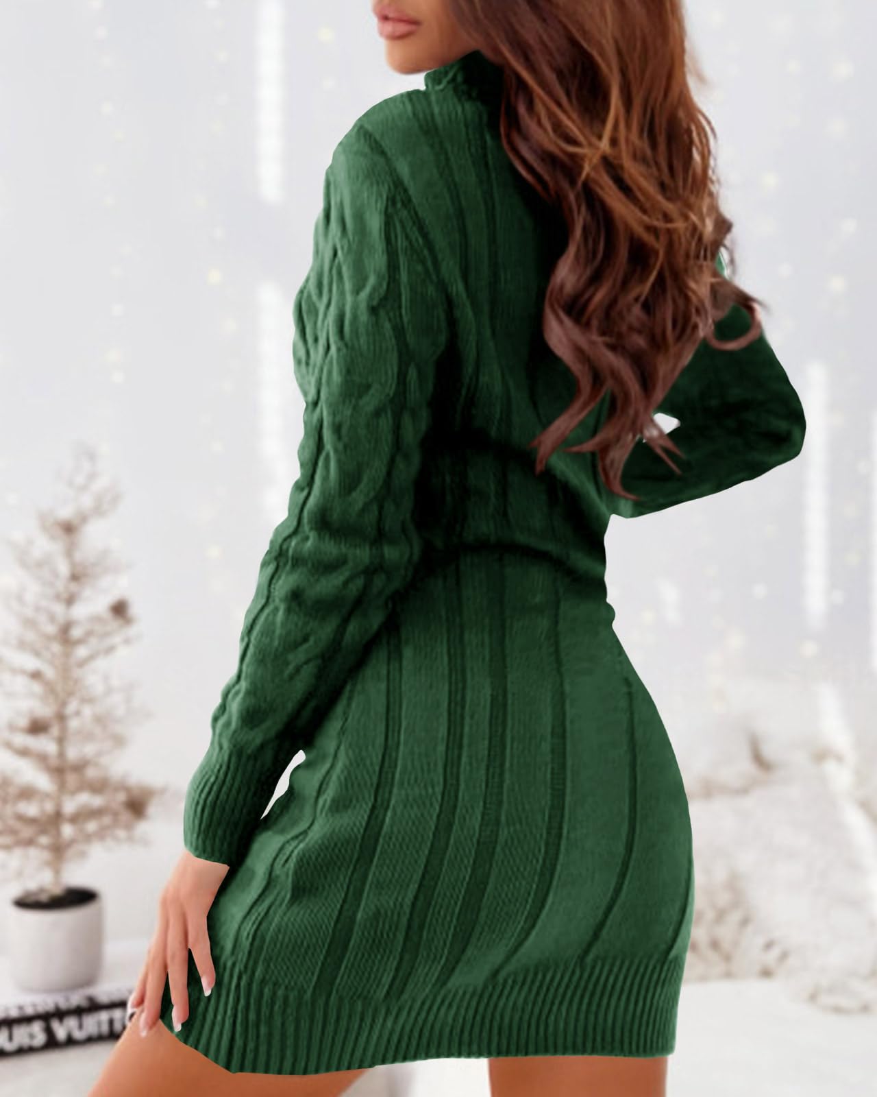 Material: made of soft fabric, turtleneck, cable knit, long sleeves, rib knit cuffs and hem, solid color, knitted elastic waist, wrap sweater dress, half body sweater dress