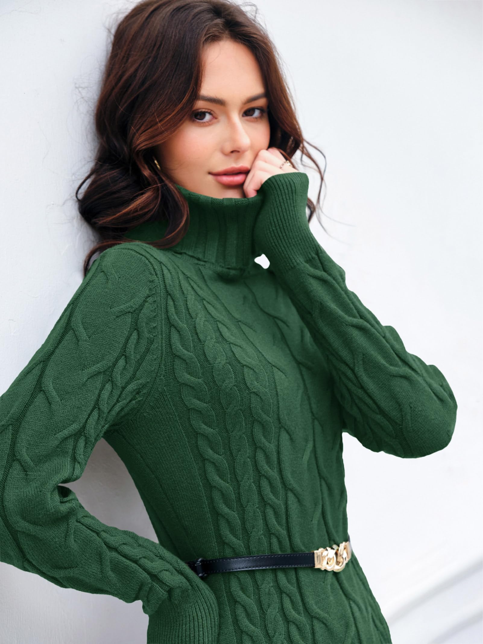 Style: women's turtleneck long sleeve sweater dress / women's cable knit sweater dress / slim fashion sweater / half body sweater dress / fall sweater dress / knitted sweater dress / feel super soft / solid color / casual style