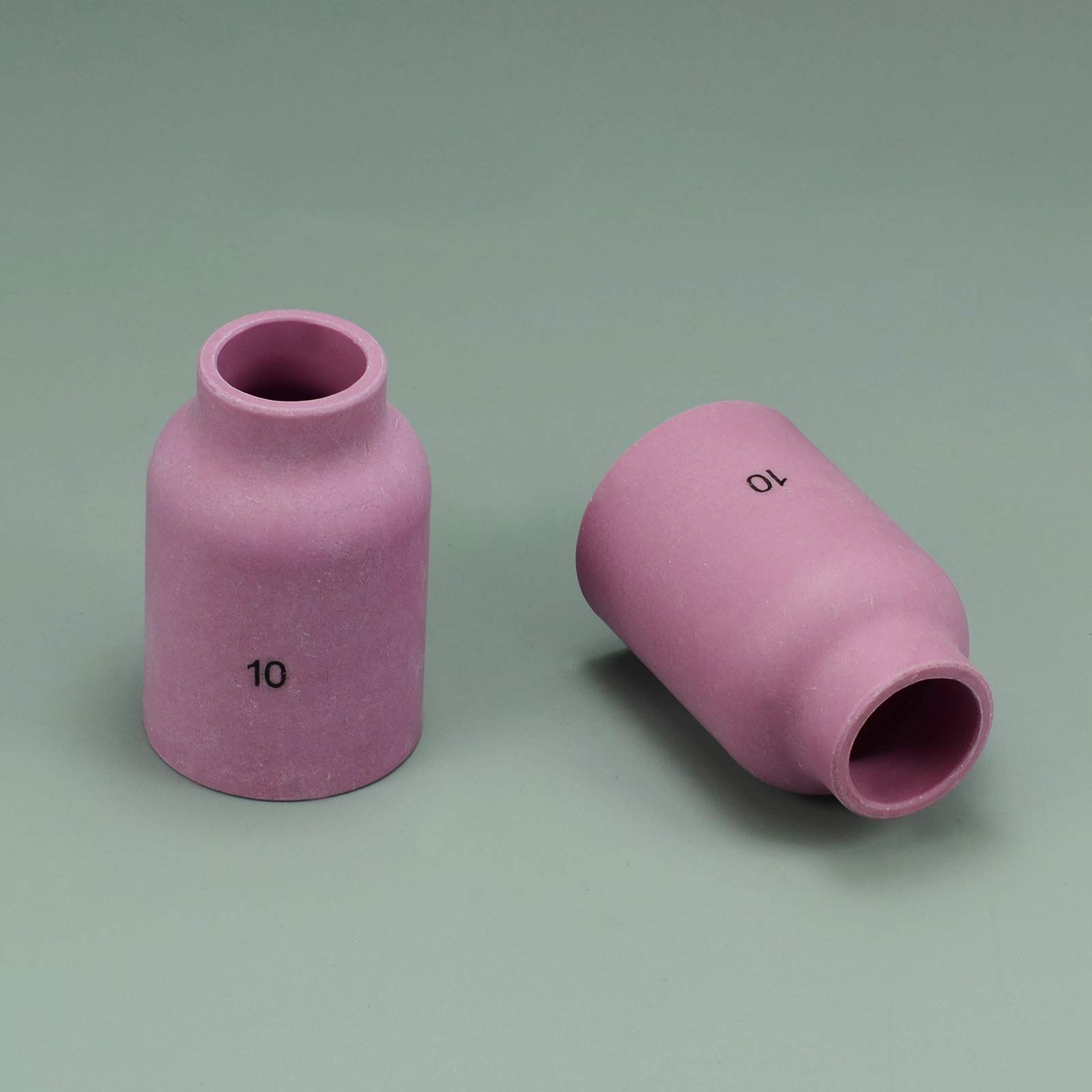 Large gas lens Alumina ceramic cups 53N88 #10 for large gas lens fit TIG welding torch 9 17 18 20 26 Ref No 53N88 #10 5/8" Orifice Size: ( 5/8" x 1-15/16" ) D16 x 48mm Quantity: 5pcs These Alumina Large Gas Lens fit all 9 17 & 26 series air cooled torches and 18 20 series water cooled torches, including the Lincoln PTA-17, PTA-18 and PTA-26 torches, Miller Diamondback DB17, DB18 and DB 26 torches, along with the Weld craft WP-17, WP-18 and WP-26 torches.