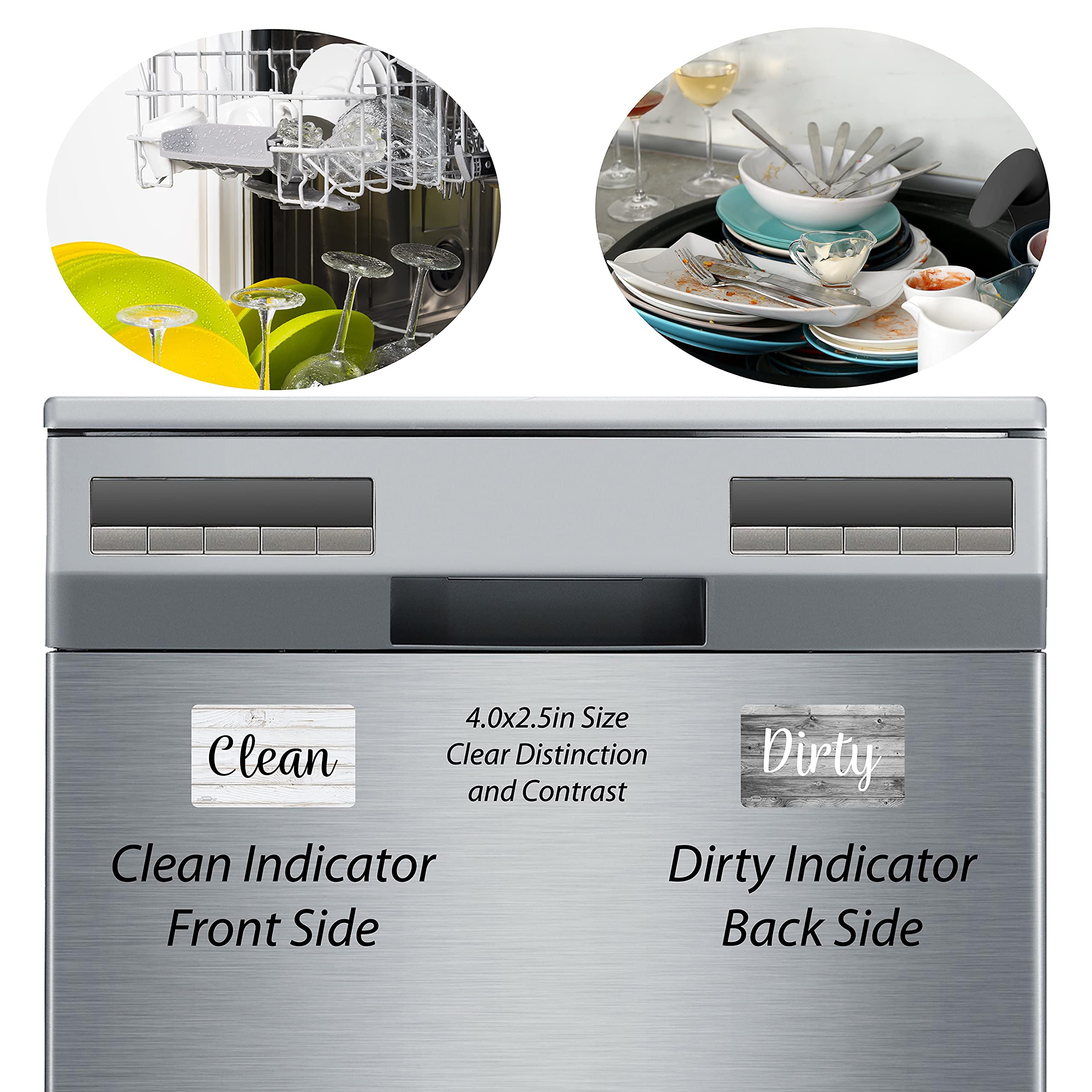 Less Dish Stress - Each dishwasher magnet clean dirty sign measures 4x2.5 inches, is reversible and easy to see from anywhere in your kitchen to eliminate guessing and improve kitchen storage and organization. Constructed of strong magnetic vinyl material to prevent unwanted surface scratching and provide a firm hold.
